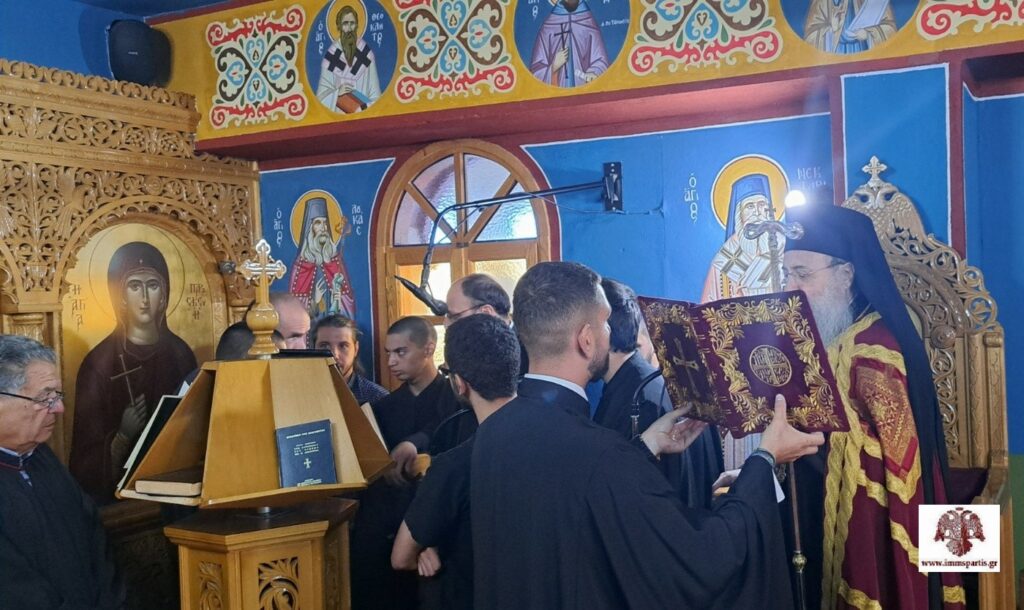 Στην πανηγυρική Θεία Λειτουργία συλλειτούργησαν οι σεβασμιώτατοι Μητροπολίτες Πατρών κ. Χρυσόστομος και Μάνης κ. Χρυσόστομος, καθώς και ο θεοφιλέστατος Επίσκοπος Λακεδαιμονίας κ. Θεόφιλος. Προηγήθηκε η ακολουθία του Όρθρου, χοροστατούντος του σεβ. Μητροπολίτου Πατρών, και η ευλόγηση των άρτων, ενώ ακολούθησε το ιερό Συλλείτουργο.