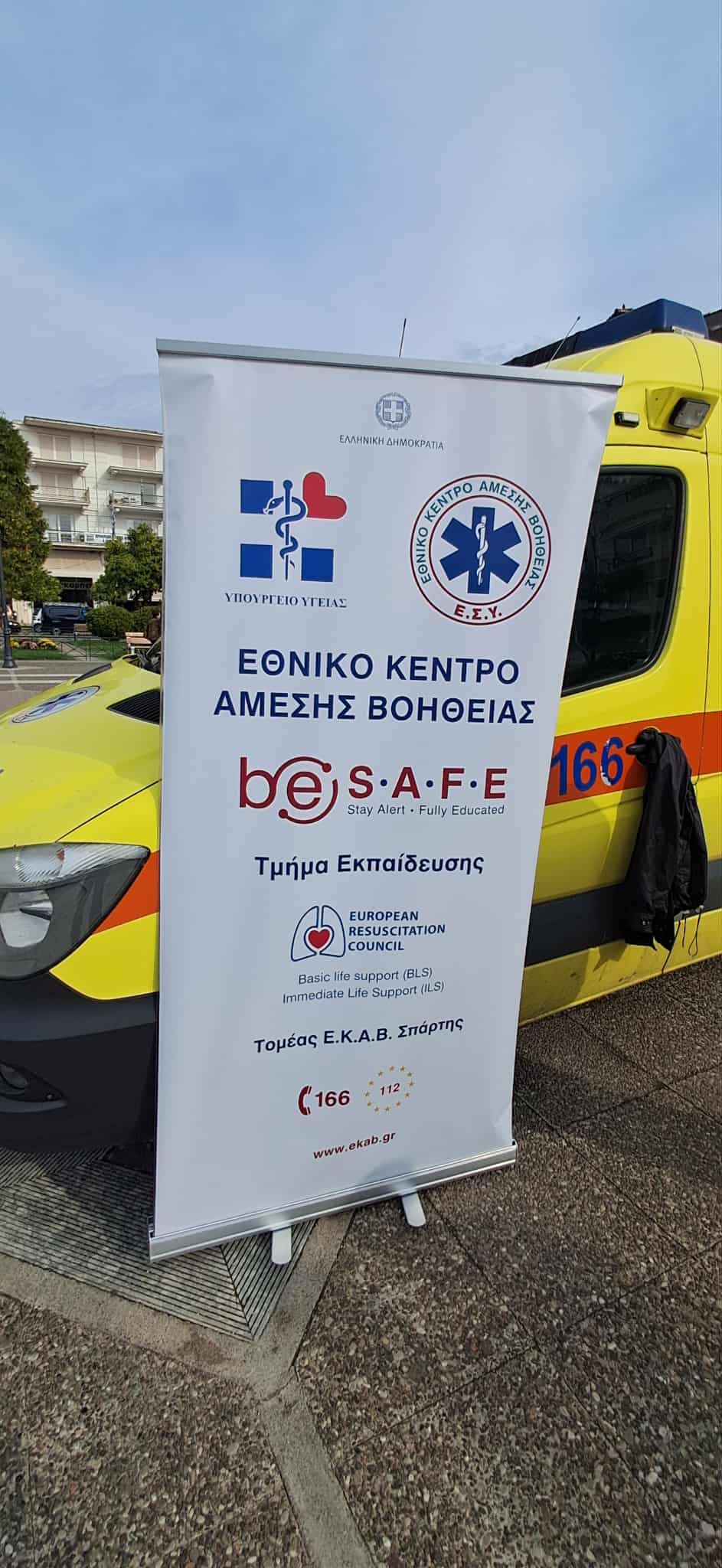 Μια ξεχωριστή και ουσιαστική δράση ενημέρωσης και εκπαίδευσης στην παροχή πρώτων βοηθειών πραγματοποίησε το ΕΚΑΒ Σπάρτης, στην κεντρική πλατεία της πόλης, με αφορμή την Παγκόσμια Ημέρα Επανεκκίνησης Καρδιάς (16 Οκτωβρίου).