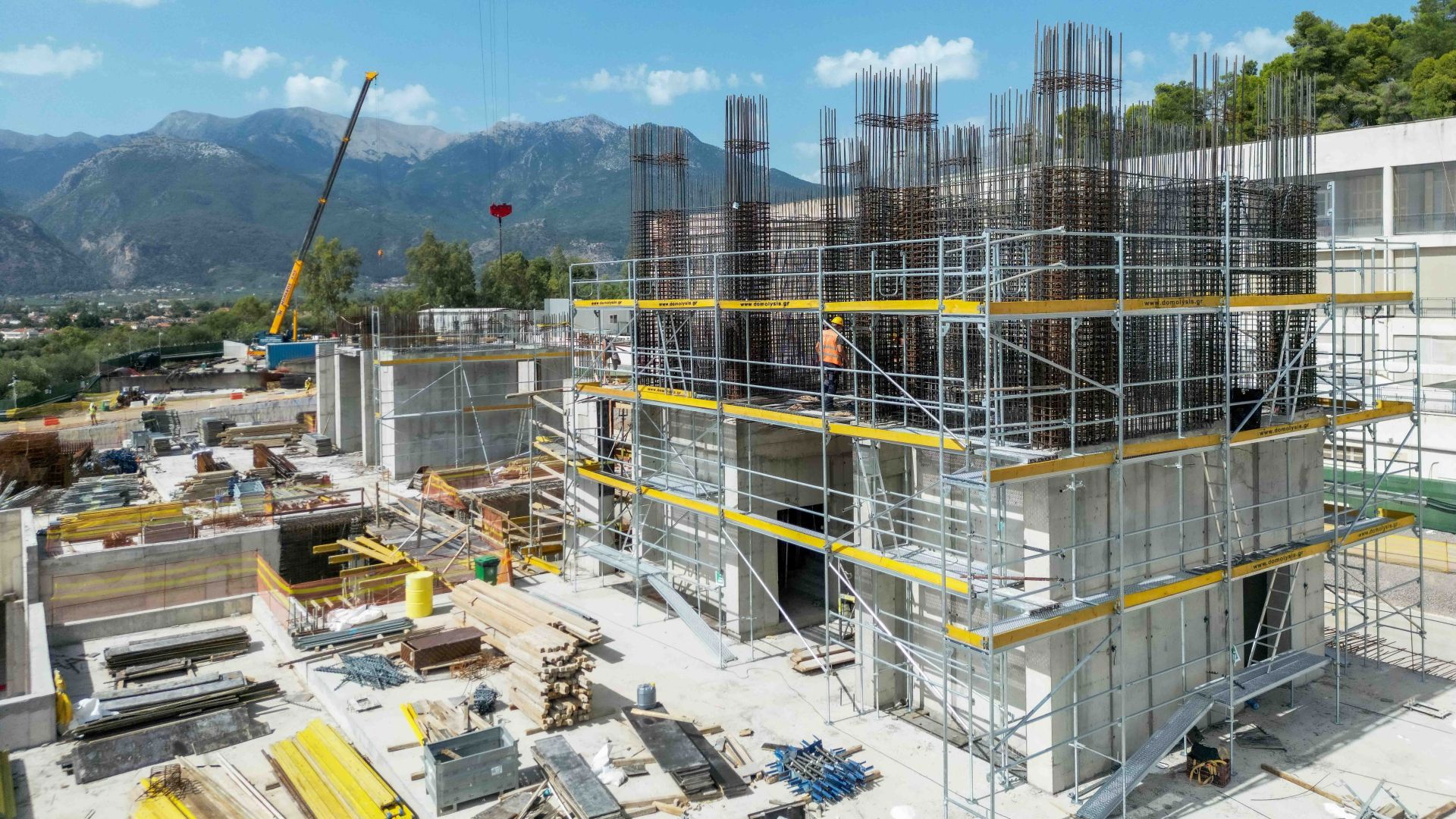 Παράλληλα, υλοποιούνται προπαρασκευαστικές εργασίες που θα διευκολύνουν μελλοντικά την έναρξη της ανέγερσης της ξύλινης ανωδομής, η οποία αναμένεται μέσα στους επόμενους μήνες. Δεδομένης της γειτνίασης του εργοταξίου με το υφιστάμενο Γενικό Νοσοκομείο Λακωνίας, όλες οι εργασίες πραγματοποιούνται με ταυτόχρονη συστηματική και προσεκτική παρακολούθηση των περιβαλλοντικών παραμέτρων, όπως η διασφάλιση της δομικής ακεραιότητας, τα επίπεδα θορύβου, σκόνης, ιζημάτων, με σκοπό την -κατά το ελάχιστο δυνατό- επιρροή των εργασιών στη ροή και τη λειτουργία του υφιστάμενου νοσοκομείου.