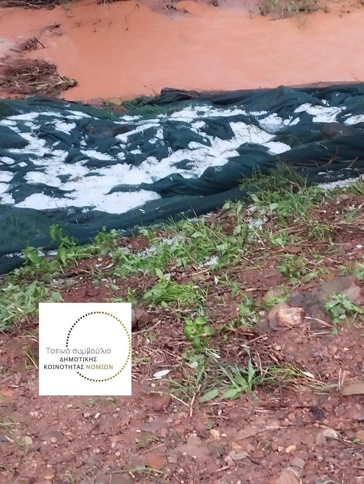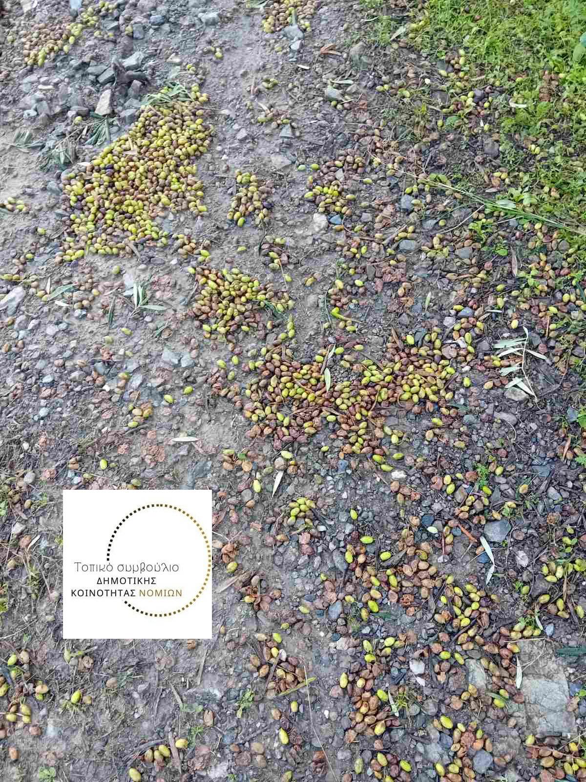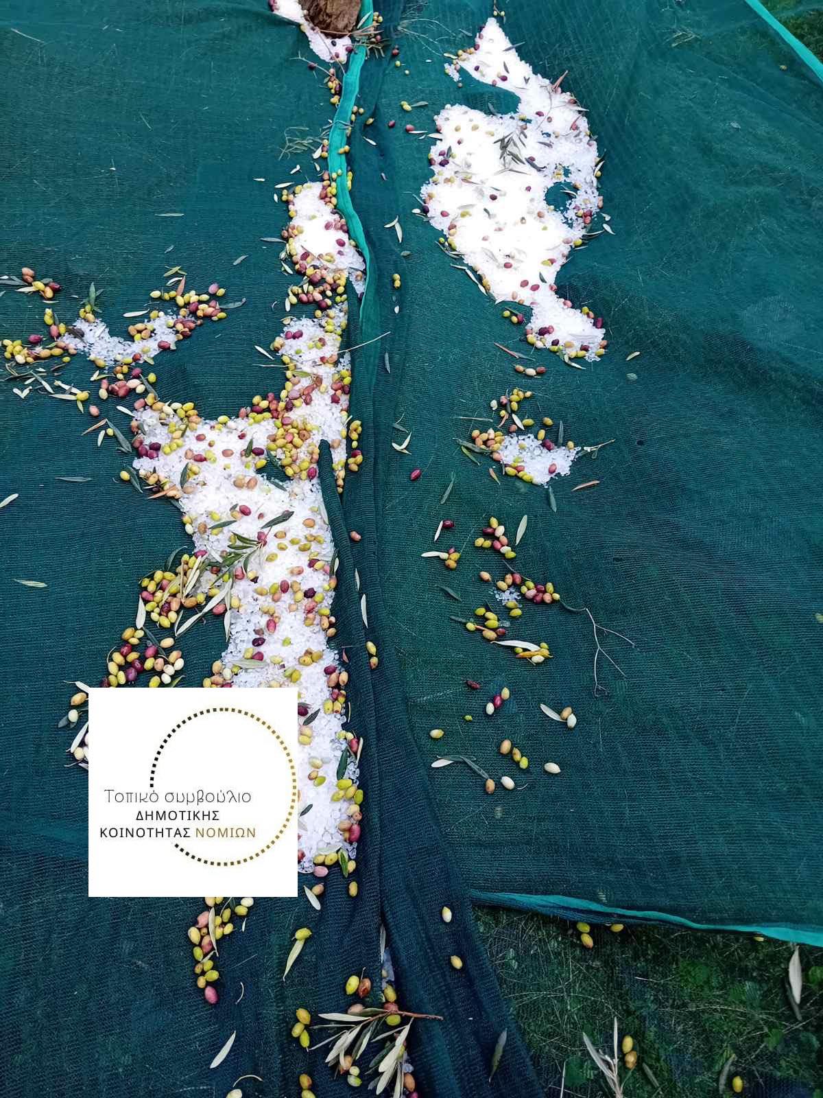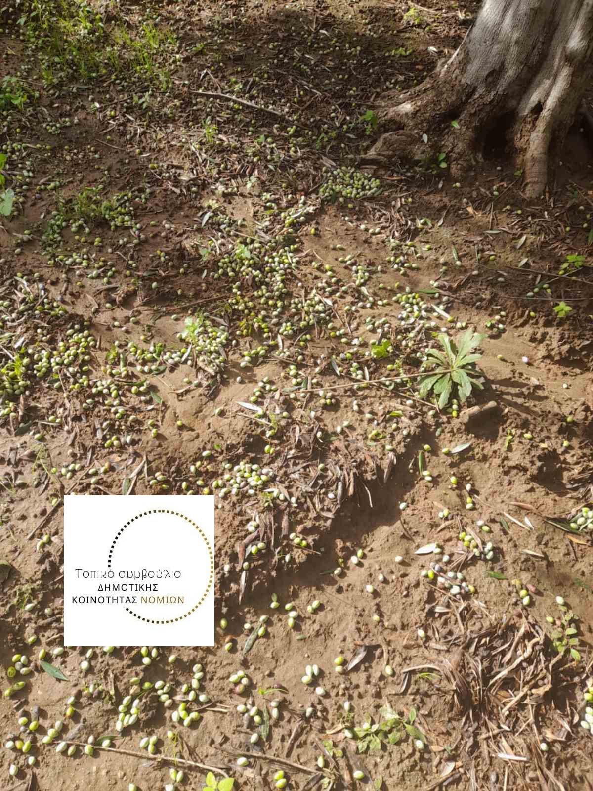 Σε συνέχεια του φαινομένου, η Κοινότητα Νομίων απέστειλε άμεσα επίσημο έγγραφο προς τον ΕΛΓΑ για την αναγγελία ζημιών και την έναρξη των εκτιμήσεων, ώστε οι ελαιοπαραγωγοί να στηριχθούν σε αυτή τη δύσκολη περίοδο. Παράλληλα, καλεί όλους τους πληγέντες αγρότες να αποστείλουν τυχόν φωτογραφικό υλικό των καλλιεργειών τους για την τεκμηρίωση των ζημιών. Οι φωτογραφίες μπορούν να σταλούν στο email: Αυτή η διεύθυνση ηλεκτρονικού ταχυδρομείου προστατεύεται από τους αυτοματισμούς αποστολέων ανεπιθύμητων μηνυμάτων. Χρειάζεται να ενεργοποιήσετε τη JavaScript για να μπορέσετε να τη δείτε..