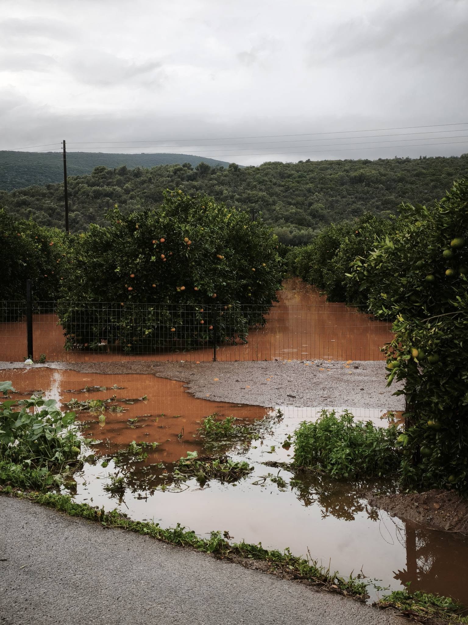 Ο ποταμός Ευρώτας «φούσκωσε», ενώ σε μια ευρεία ζώνη από τη Σκάλα ως το Δέλτα του ποταμού, καλλιέργειες εσπεριδοειδών, κηπευτικών κ.α. καλύφθηκαν από τα νερά.