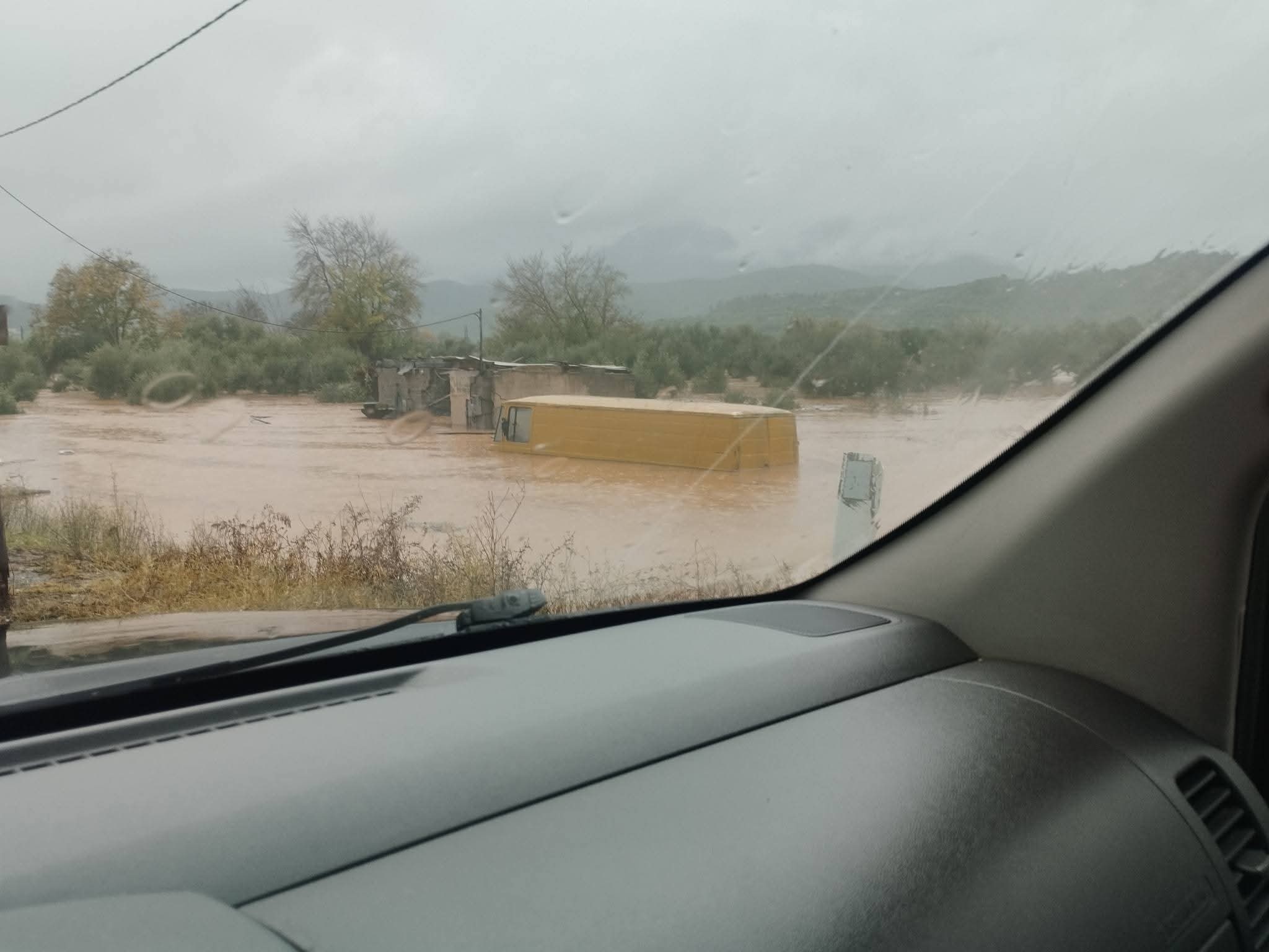 Το χωριό Πλάτανος στην Ανατολική Μάνη πλημμύρισε ολοκληρωτικά, με σπίτια, αυτοκίνητα, ζώα και αγροτικά μηχανήματα να βρίσκονται κάτω από το νερό. Σοβαρά προβλήματα καταγράφηκαν και στις περιοχές Κότρωνα και Καρβελά, ενώ το οδικό δίκτυο στην Ανατολική Μάνη έχει υποστεί σοβαρές ζημιές, καθιστώντας τη διέλευση σε αρκετές περιπτώσεις σχεδόν αδύνατη.