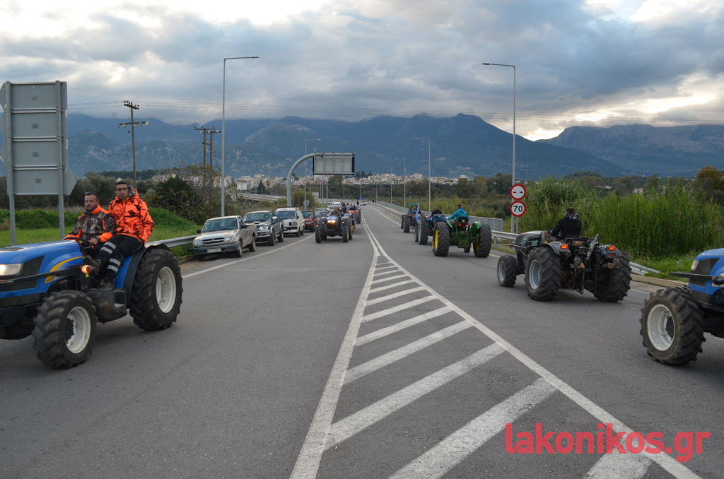 Μετά την προετοιμασία και τις αρχικές συγκεντρώσεις στις πλατείες χωριών, την Κυριακή (7/12), το ραντεβού με τις «επάλξεις» δόθηκε τη Δευτέρα (8/12) το απόγευμα στον κόμβο της νέας εισόδου Σπάρτης, όπου παραγωγοί συγκεντρώθηκαν με τρακτέρ και αγροτικά μηχανήματα. «Όλη η Ελλάδα δίνει αγώνα επιβίωσης, όλοι αγωνιούμε για το σήμερα και το αύριο. Τα αιτήματά μας είναι οι κατώτερες εγγυημένες τιμές. Ζητούμε μείωση του κόστους παραγωγής. Να αλλάξει ο κανονισμός του ΕΛΓΑ, ώστε να ασφαλίζει και να αποζημιώνει. Να γίνει αναπλήρωση του χαμένου εισοδήματος για το 2025 σε όλα τα προϊόντα. Σύνδεση της επιδότησης με την παραγωγή στη γεωργία και με το ζωικό κεφάλαιο στην κτηνοτροφία. Να σταματήσει αυτό που επιβάλει η ΕΕ. Να γίνουν αναγκαία έργα υποδομής σε κάθε περιοχή, αρδευτικά, αντιπλημμυρικά. Τις προάλλες πλημμυρίσαμε στον Δ. Ευρώτα και το καλοκαίρι δεν έχουμε νερό να ποτίσουμε τα χωράφια μας. Να γίνει πάγωμα οφειλών σε ασφαλιστικούς οργανισμούς, ΔΟΥ, τράπεζες, ΔΕΗ. Και τέλος όχι στη μείωση των πόρων της ΚΑΠ για την πολεμική προετοιμασία της Ευρώπης. Οι αγρότες είναι οι τελευταίοι θύλακες της ελληνικής κοινωνίας. Όλη η κοινωνία στηρίζεται πάνω μας. Θα αντιδράσουμε. Το βάρος πέφτει στις πλάτες της αγροτιάς και δεν μιλάει κανένας. Η Ελλάδα έχει ξεφτιλιστεί. Εξαθλίωση και φτώχεια παντού», τόνισε ο Γιάννης Μπλέτας, πρόεδρος του Αγροτοκτηνοτροφικού Συλλόγου Δ. Ευρώτα.