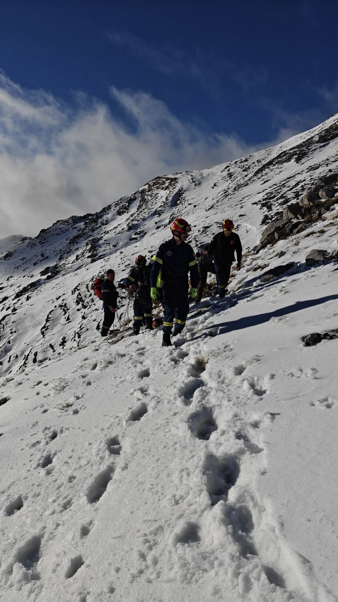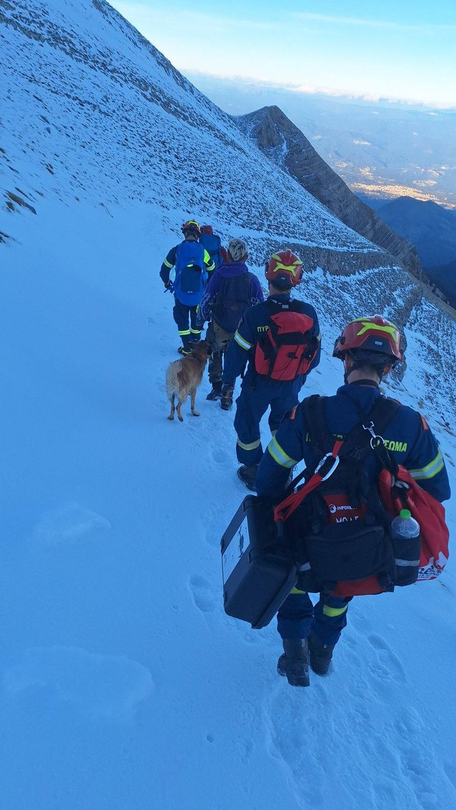 Η επιχείρηση ξεκίνησε νωρίς το μεσημέρι και διήρκεσε περίπου πέντε ώρες, με τις ομάδες να κινούνται σε ιδιαίτερα δυσπρόσιτο πεδίο, μέσα σε χαμηλές θερμοκρασίες και παχύ στρώμα χιονιού. Οι φωτογραφίες από την αποστολή στο βουνό κόβουν την ανάσα, καθώς οι διασώστες αναγκάστηκαν να βαδίσουν σε στενά και επικίνδυνα περάσματα, όπου η παραμικρή ολίσθηση θα μπορούσε να έχει σοβαρές συνέπειες. Μαζί τους επιχειρούσε και σκύλος έρευνας, ενισχύοντας την προσπάθεια εντοπισμού.