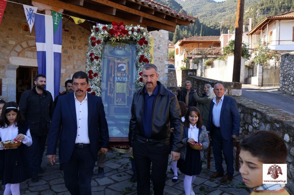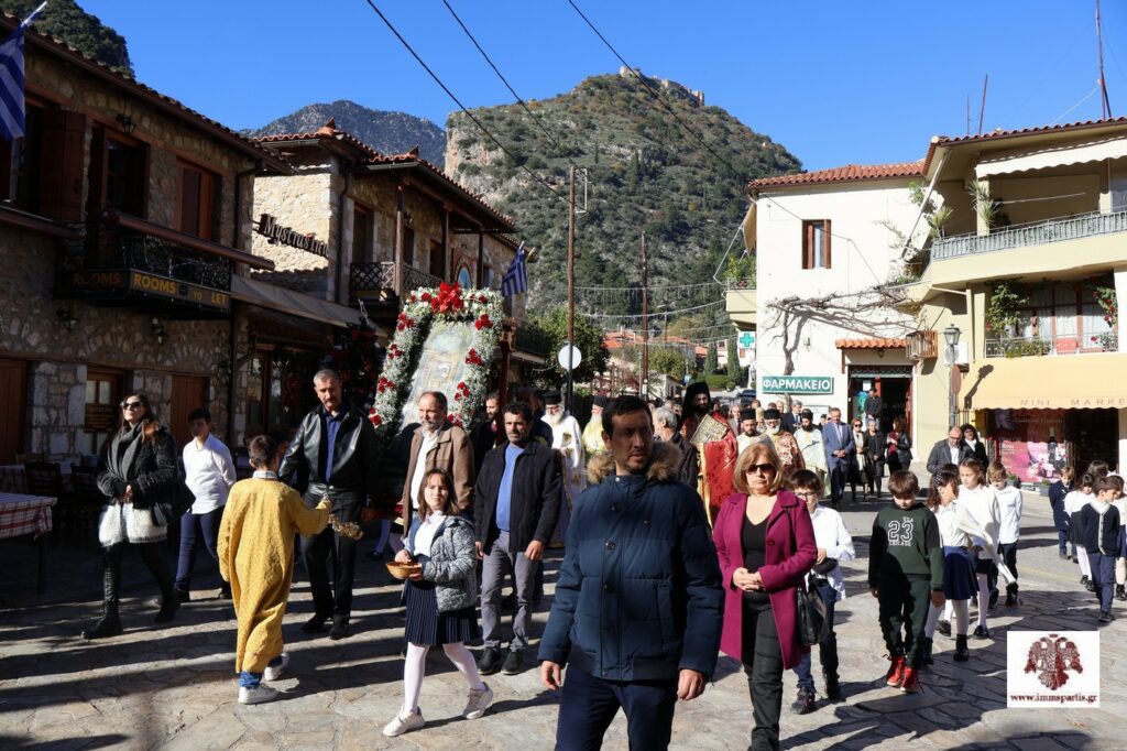 Ακολούθησε, σε κατανυκτικό κλίμα, η καθιερωμένη από το 1921 λιτάνευση της εικόνας του Αγίου Σπυρίδωνος στους κεντρικούς δρόμους του Μυστρά, υπό τους παιανισμούς της Φιλαρμονικής του Δ. Σπάρτης, της οποίας ο Άγιος Σπυρίδωνας είναι και προστάτης.