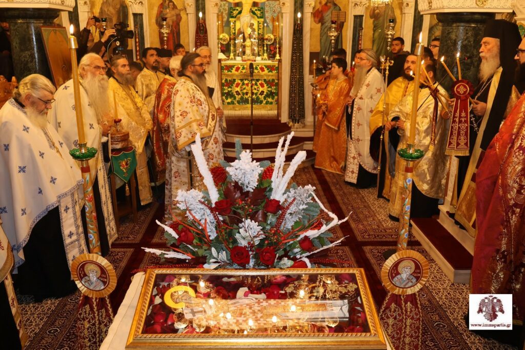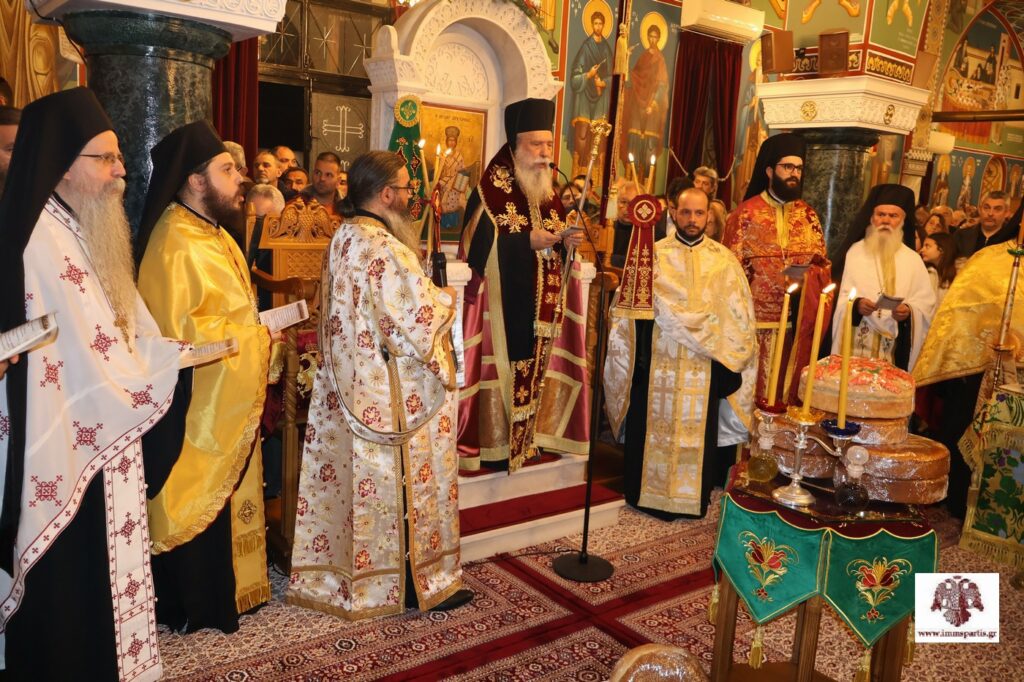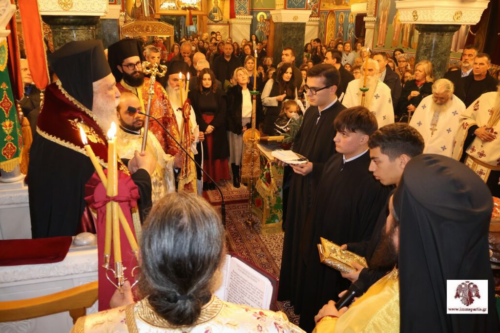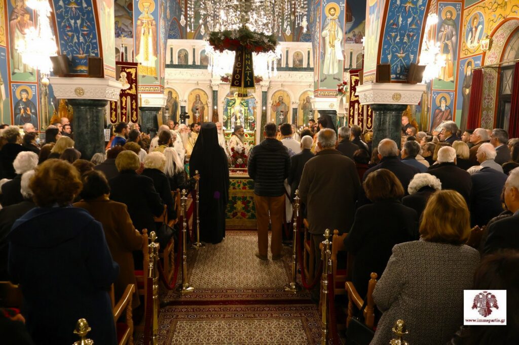 Το απόγευμα της παραμονής της εορτής, Πέμπτη (11/12), τελέσθηκε ο Μέγας πανηγυρικός Αρχιερατικός Εσπερινός μετ’ αρτοκλασίας, χοροστατούντος του σεβασμιωτάτου Μητροπολίτη κ. Ευσταθίου, με τη συμμετοχή πλειάδας κληρικών από την ευρύτερη περιοχή.