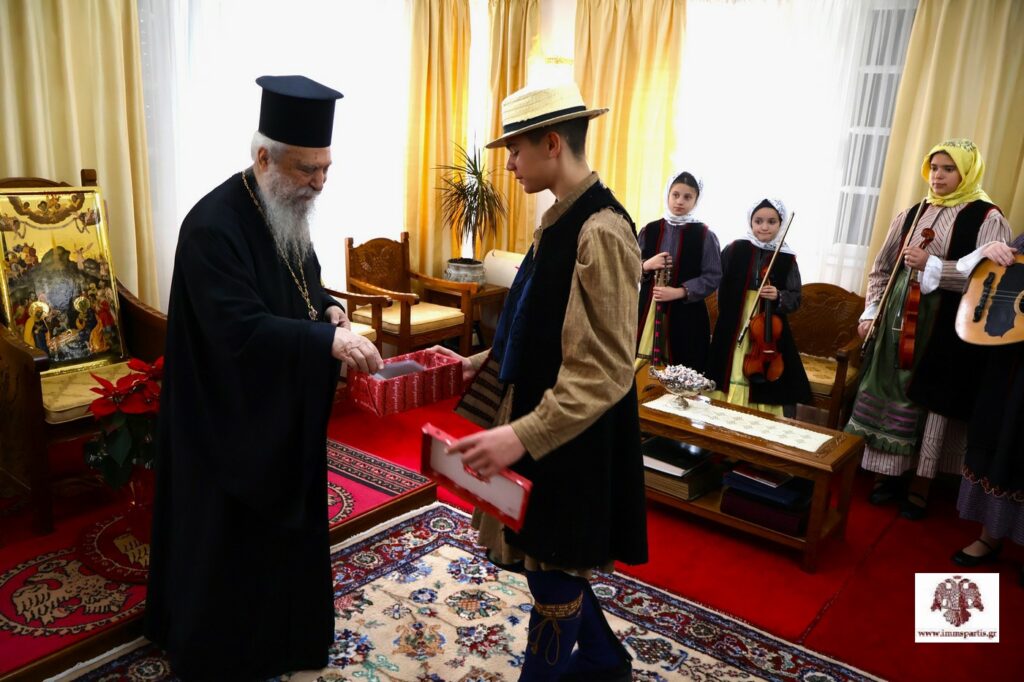 Εορταστικό ήταν το κλίμα την παραμονή της Πρωτοχρονιάς (31/12/25) στο Επισκοπείο στη Σπάρτη, με τον σεβασμιώτατο Μητροπολίτη κ. Ευστάθιο να ακούει τα παραδοσιακά κάλαντα από πολλές παρέες παιδιών, που αυθόρμητα θέλησαν να του ευχηθούν, από νωρίς το πρωί, για το νέο έτος.