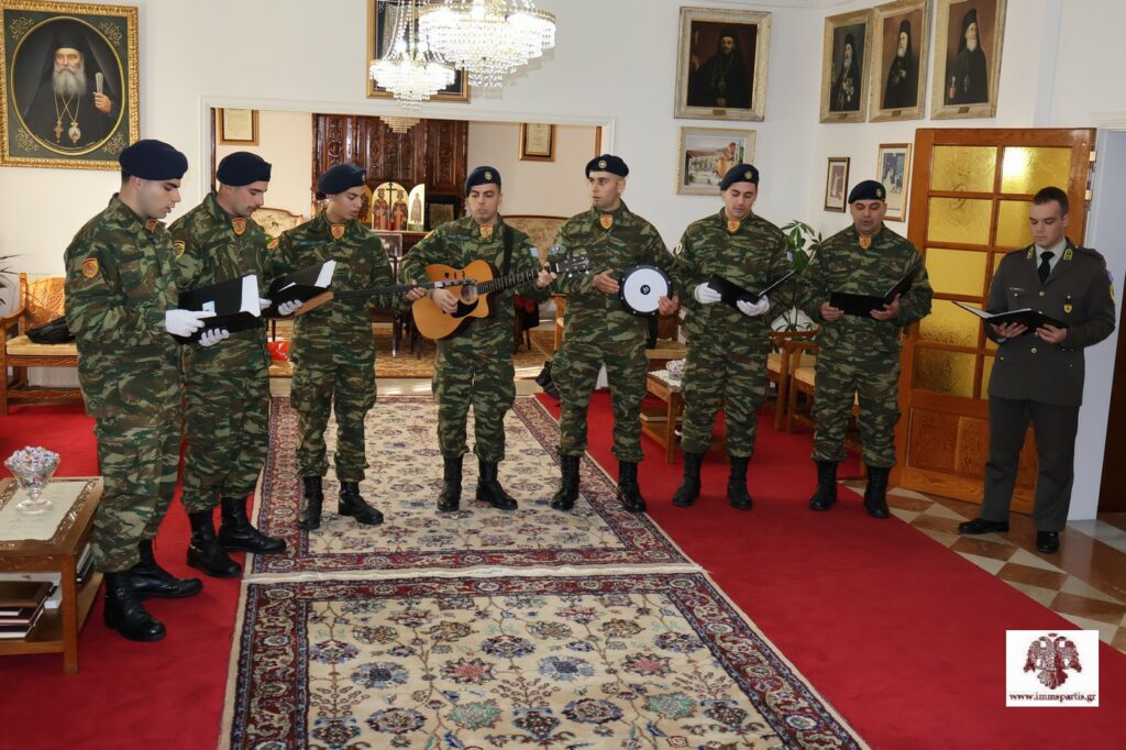 Ως είθισται, το Επισκοπείο επισκέφθηκε η χορωδία του Κέντρου Εκπαιδεύσεως Εφοδιασμού Μεταφορών (ΚΕΕΜ), για να ψάλει τα κάλαντα. Ο σεπτός Ποιμενάρχης ευχαρίστησε τον επικεφαλής υπαξιωματικό και τους στρατευμένους για την παρουσία τους, ενώ τους ευχήθηκε το νέο έτος να συνοδευτεί «από υγεία, χαρά και κατά Θεόν προκοπή» για τους ίδιους και τις οικογένειές τους. Ακολούθησε το καθιερωμένο κέρασμα.