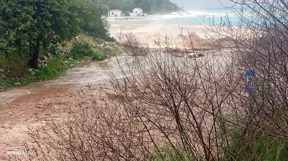 Όλη η παραλιακή ζώνη της Μονεμβασιάς, ως τον Άγιο Φωκά τουλάχιστον, αλλά και η αντίπερα πλευρά του δήμου, στα Βάτικα, υπέστη την επέλαση και το «σφυροκόπημα» των ανέμων, με το νερό να παρασύρει στην ξηρά φερτά υλικά.