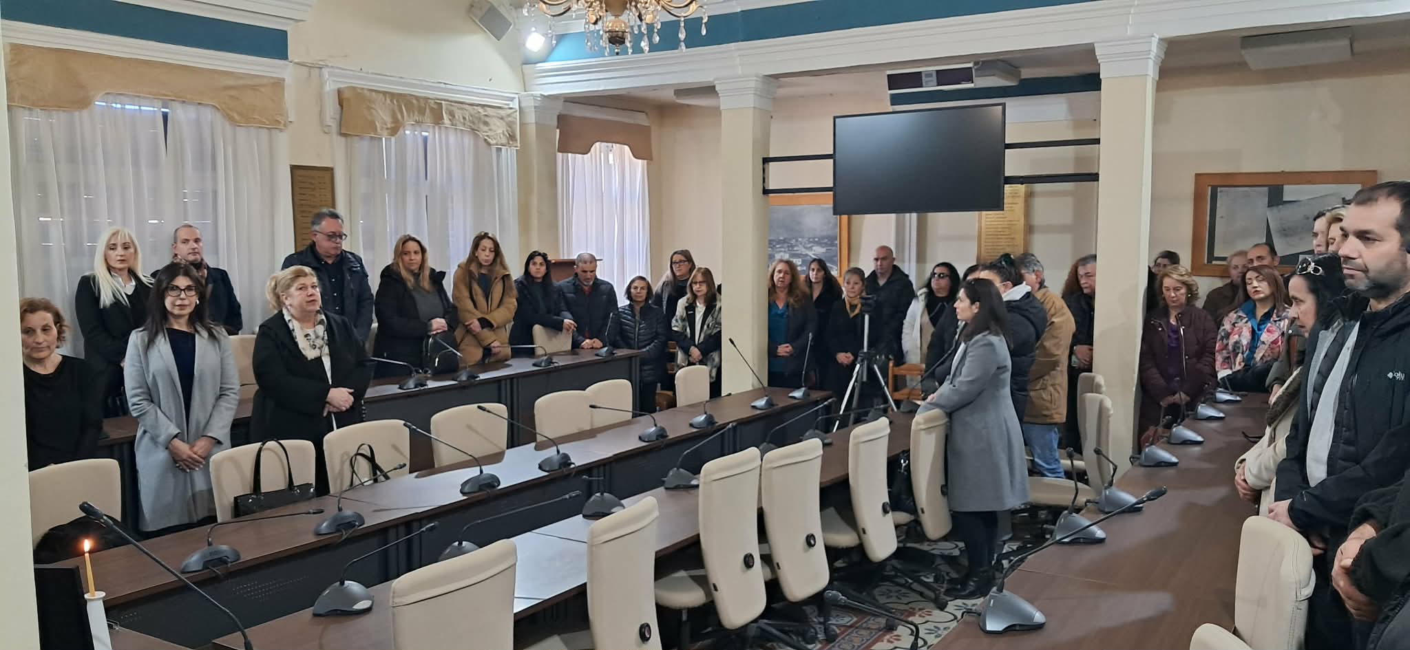 Κάλεσε δε όλους τους παρευρισκόμενους, πριν την κοπή της πίτας, στην τήρηση ενός λεπτού σιγής στη μνήμη του εργαζόμενου του Δήμου Σπάρτης, Κώστα Μπουγάδη, που απεβίωσε πρόσφατα.