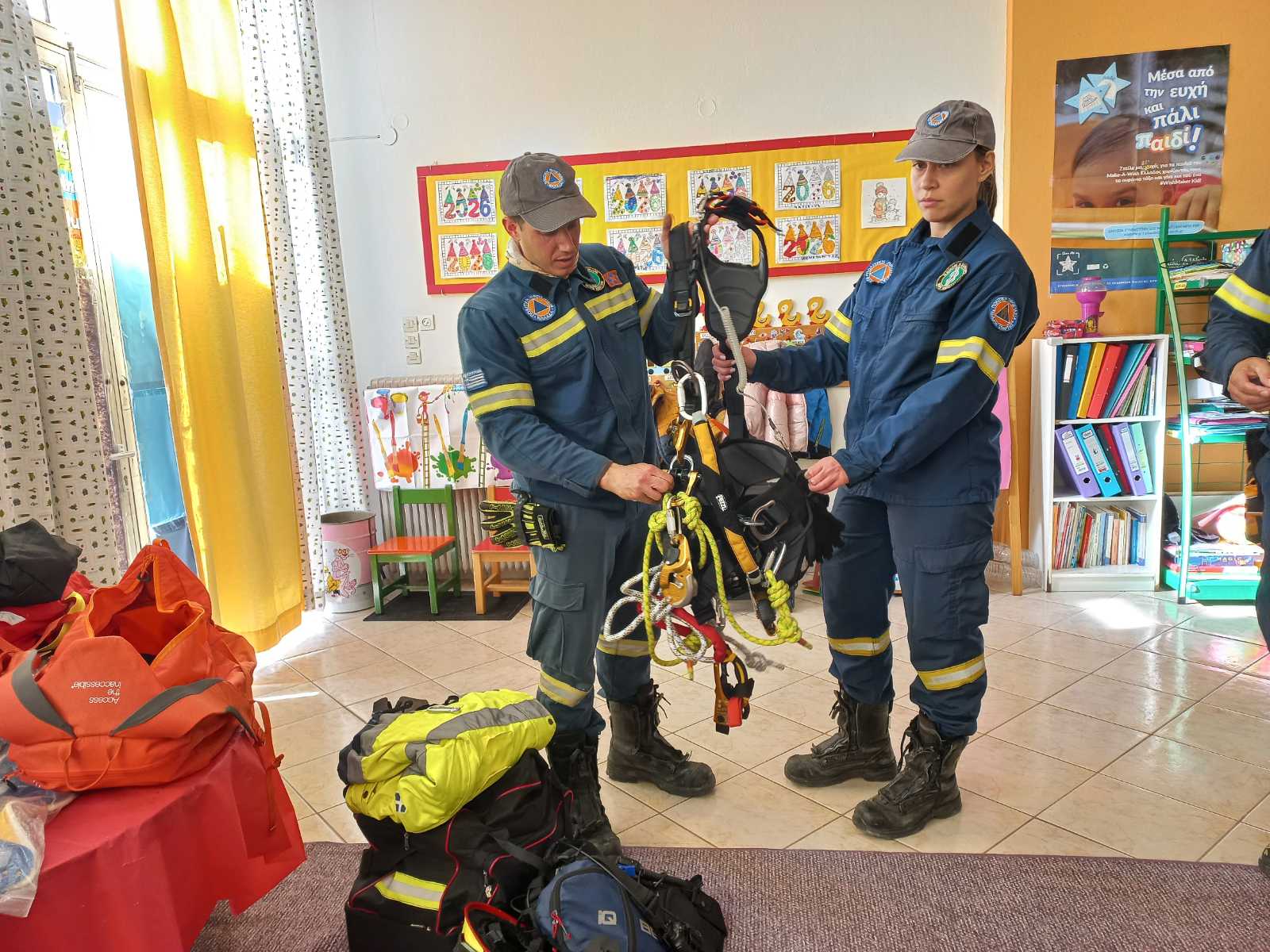 Με απλό και κατανοητό τρόπο, τα στελέχη της Πολιτικής Προστασίας εξήγησαν στους μικρούς μαθητές πώς πρέπει ν’ αντιδρούμε σε περιπτώσεις πυρκαγιών, σεισμών και πλημμυρών, δίνοντας έμφαση στη σωστή συμπεριφορά και στην ψυχραιμία που σώζουν ζωές. Παράλληλα, παρουσίασαν στα παιδιά τον βασικό εξοπλισμό που χρησιμοποιείται σε επιχειρήσεις διάσωσης και αντιμετώπισης εκτάκτων περιστατικών.