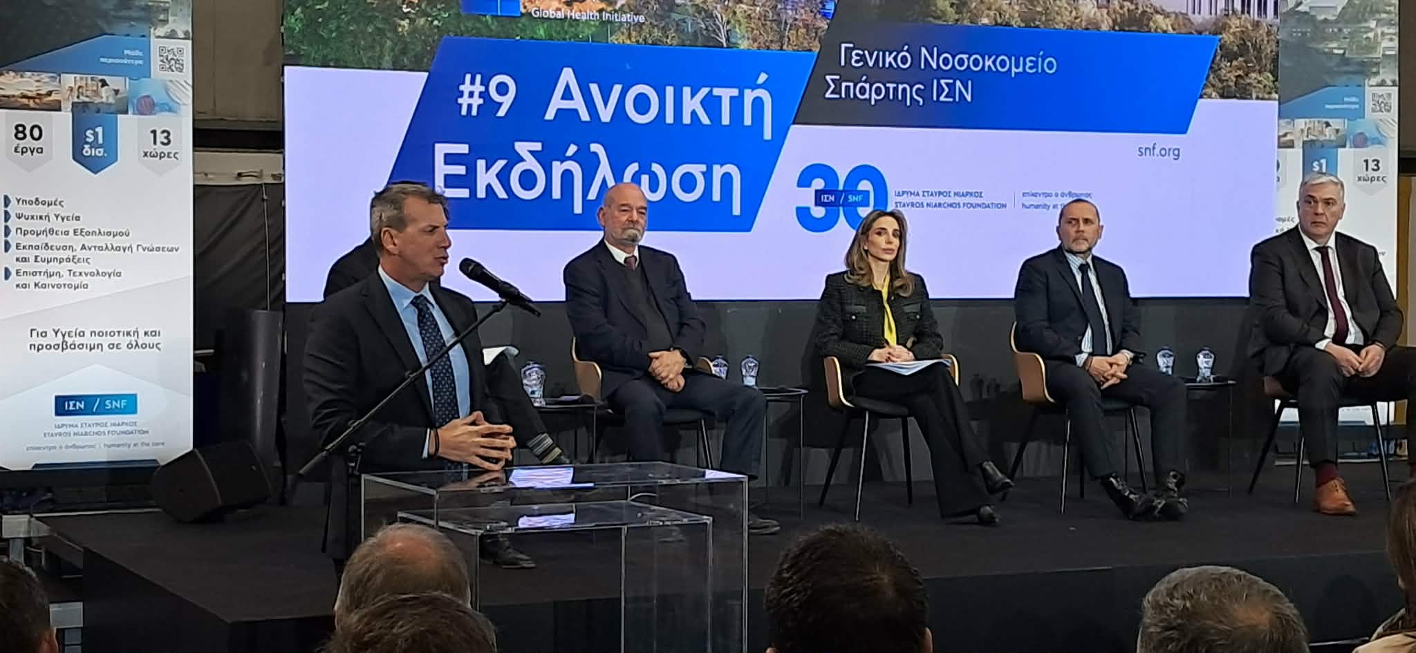 Ο διοικητικός διευθυντής του ΙΣΝ, Πάνος Παπούλιας, αναφέρθηκε στο εύρος της παρέμβασης του Ιδρύματος στην Υγεία, σημειώνοντας: «Το νέο νοσοκομείο που κατασκευάζεται στη Σπάρτη εντάσσεται στη “Διεθνή Πρωτοβουλία για την Υγεία” του ΙΣΝ, που απαρτίζεται από δεκάδες δωρεές κι έχει συνολικό προϋπολογισμό πλέον του ενός δισεκατομμυρίου δολαρίων. Οι πολλές δωρεές που εδράζουν κάτω από την ομπρέλα της “Πρωτοβουλίας” λαμβάνουν χώρο στο εξωτερικό και στην Ελλάδα. Αφορούν υποδομές, εξοπλισμό, ψυχική υγεία, εκπαίδευση, έρευνα και επιστημονικές συνεργασίες. Το Πανεπιστημιακό Παιδιατρικό Νοσοκομείο Θεσσαλονίκης, το Νοσοκομείο Κομοτηνής και το Νοσοκομείο Σπάρτης, συμπυκνώνουν όλους τους προηγούμενους 5 πυλώνες. Αποτελούν από τα μεγαλύτερα κτιριακά πρότζεκτ αυτή τη στιγμή στον ελλαδικό χώρο και αν όχι το πιο πολύπλοκο, σίγουρα ένα από τα πιο πολύπλοκα».