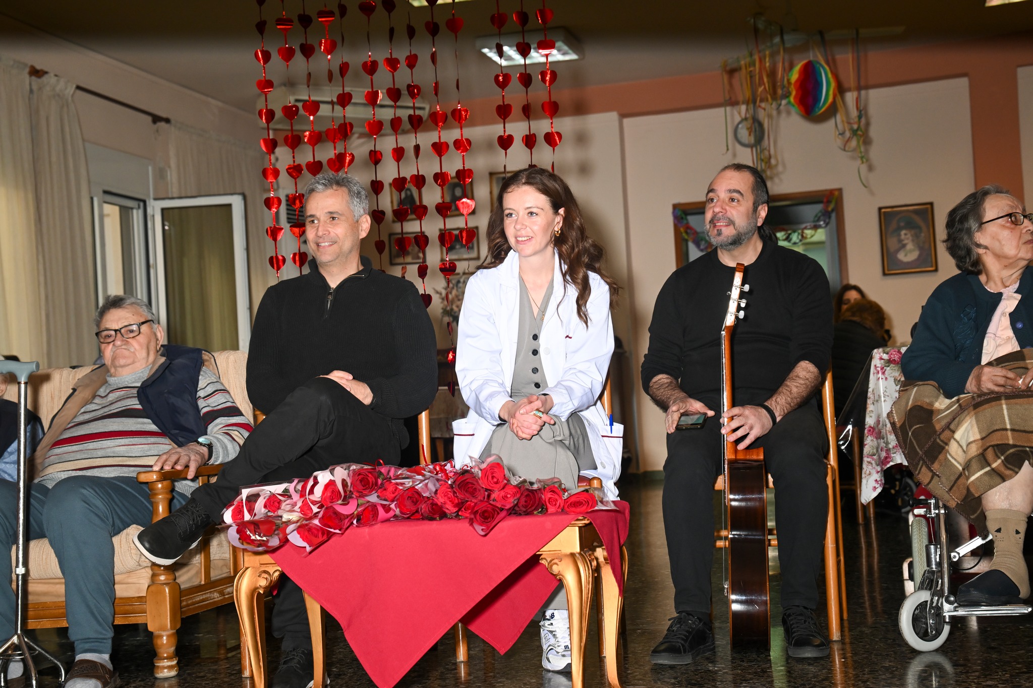 Ο Γιώργος Κεραμιδάς μίλησε στους ηλικιωμένους για τον έρωτα και την αγάπη ως δύναμη ζωής σε κάθε ηλικία, συζήτησε μαζί τους προσωπικές ιστορίες και μνήμες από τα νεανικά τους χρόνια. Παράλληλα, σε συνεργασία με την κοινωνική λειτουργό, Τζεσίλντα Κάμπερ, υλοποίησε βιωματικές ασκήσεις που ενίσχυσαν τη συμμετοχή και τη συναισθηματική σύνδεση όλων. Η κ. Κάμπερ, με τον ουσιαστικό επαγγελματισμό και την έμπρακτη ευαισθησία που τη διακρίνει ως κοινωνική λειτουργό του Γηροκομείου, επιμελήθηκε παράλληλα τον στολισμό και τις δραστηριότητες, δίνοντας ψυχή στην εκδήλωση.