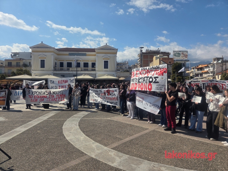 Με ιδιαίτερα αυξημένη συμμετοχή πραγματοποιήθηκε, το μεσημέρι του Σαββάτου (28/2), η συγκέντρωση μνήμης και διαμαρτυρίας στη Σπάρτη για τη συμπλήρωση τριών ετών από το τραγικό σιδηροδρομικό δυστύχημα στα Τέμπη. Το κέντρο της πόλης γέμισε από πολίτες κάθε ηλικίας, εργαζόμενους, μαθητές και φοιτητές, που ανταποκρίθηκαν στο κάλεσμα φορέων και σωματείων, στέλνοντας ηχηρό μήνυμα μνήμης και διεκδίκησης.