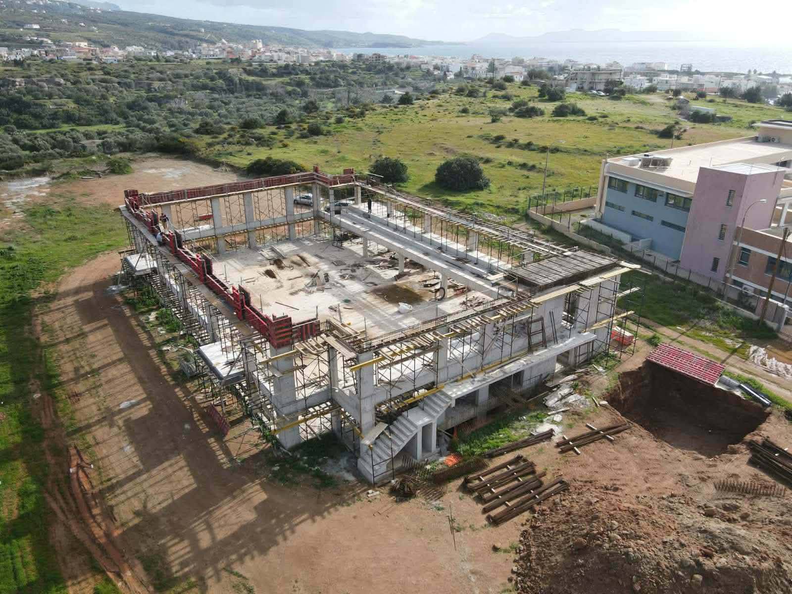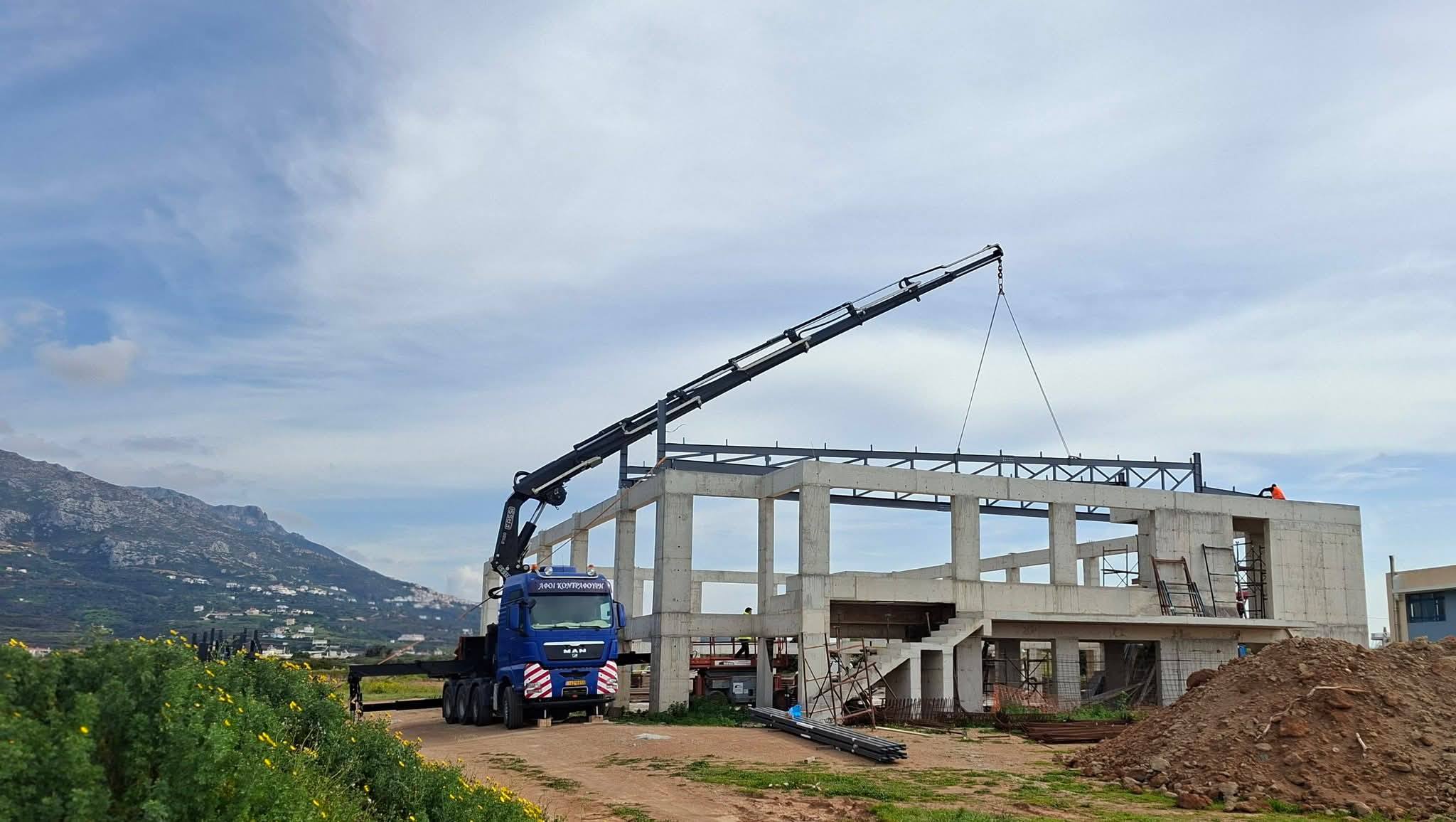 Με γοργά και σταθερά βήματα προχωρούν οι εργασίες κατασκευής του νέου Κλειστού Γυμναστηρίου στη Νεάπολη Βοιών. Το έργο βρίσκεται σε σημαντικό στάδιο εξέλιξης, καθώς αυτό το διάστημα τοποθετούνται τα μεταλλικά ζευκτά της στέγης, ένα κρίσιμο τεχνικό στάδιο που σηματοδοτεί την ουσιαστική πρόοδο της κατασκευής.