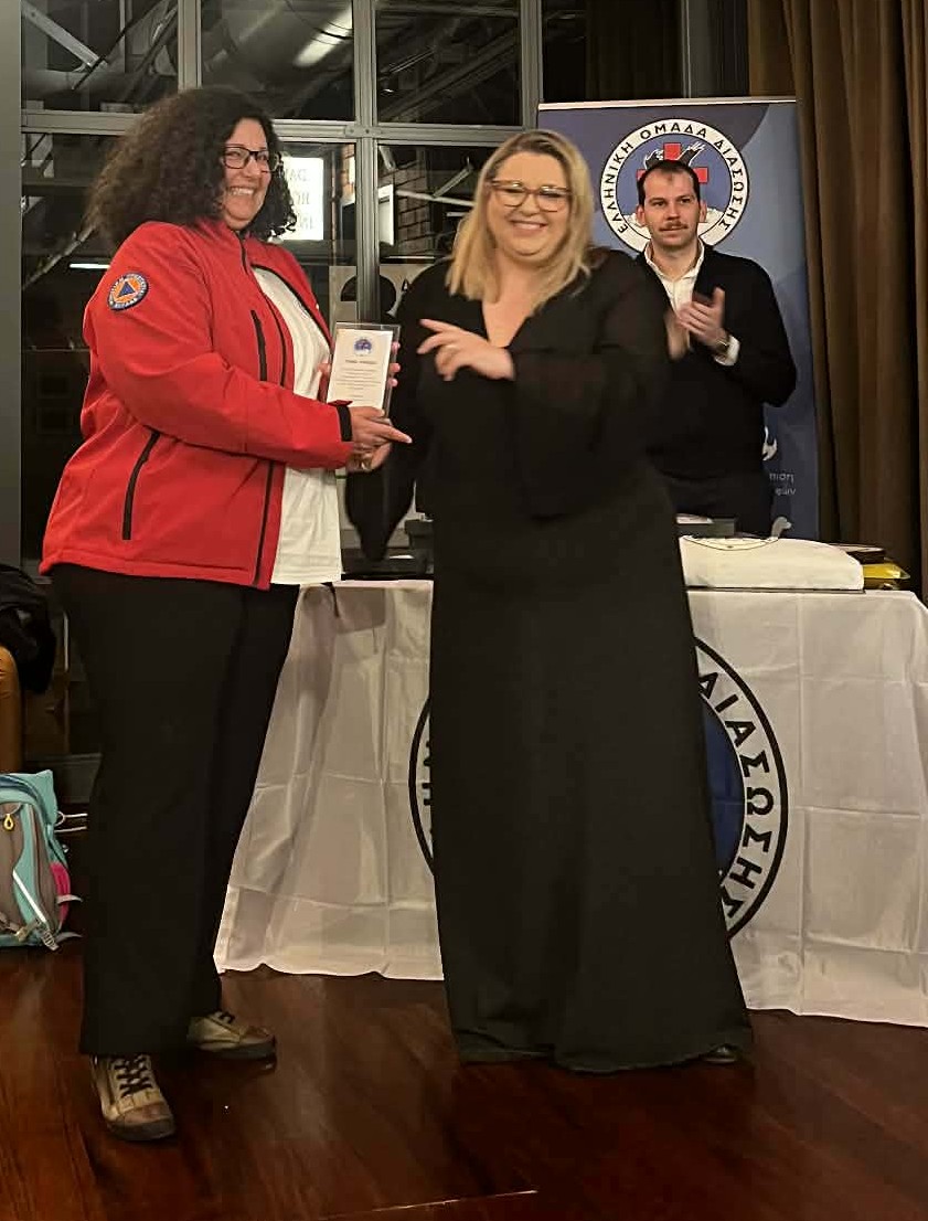 Το παράρτημα Λακωνίας εκπροσώπησαν στην τελετή οι δύο γραμματείς του Διοικητικού Συμβουλίου, Βασιλική Πρόγγα και Πολυτίμη Σταθάκου, οι οποίες ταξίδεψαν από την Καλαμάτα στη Θεσσαλονίκη με την υποστήριξη της AEGEAN, επίσημου χορηγού της Ελληνικής Ομάδας Διάσωσης, προκειμένου να παραλάβουν το βραβείο εκ μέρους όλων των μελών.