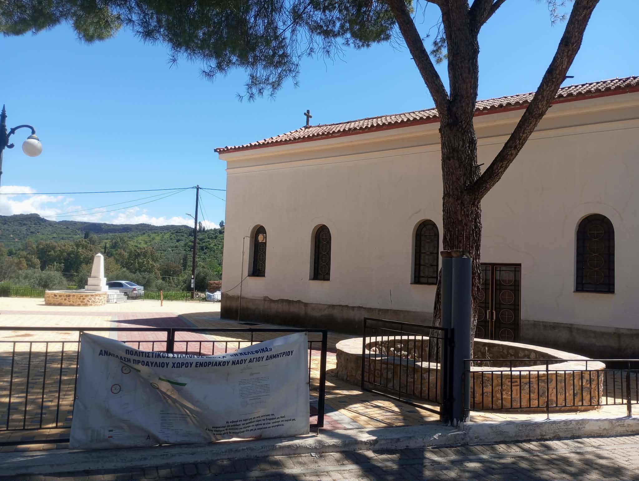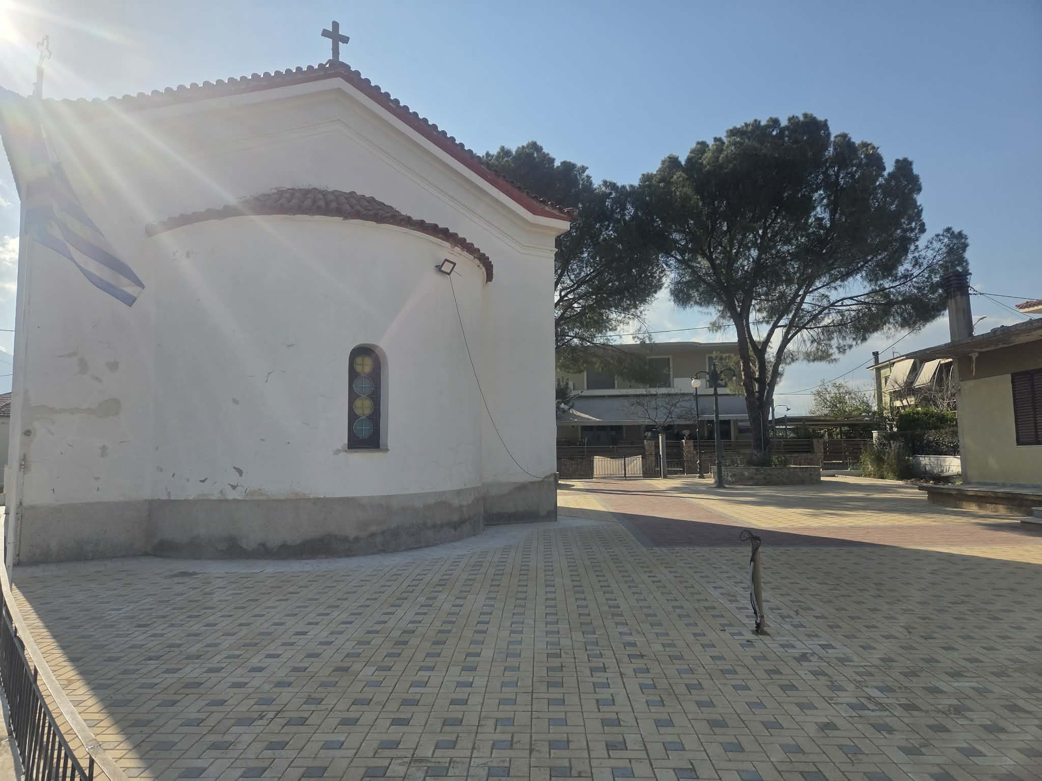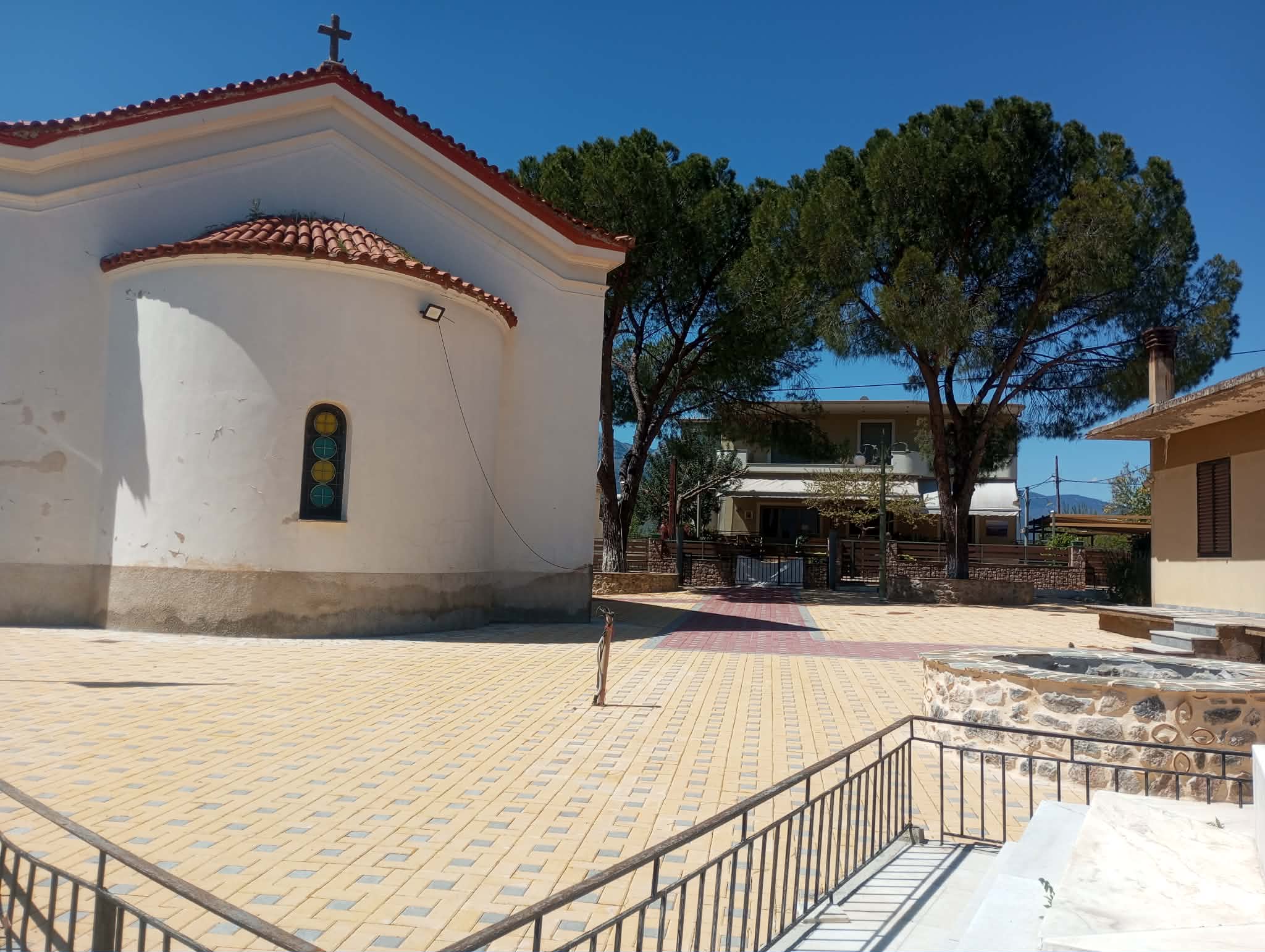 Εκεί όπου μέχρι πρότινος απλωνόταν ένας «συμβατικός», χωμάτινος και ανοργάνωτος χώρος, σήμερα αναδεικνύεται ένα καλαίσθητο και λειτουργικό προαύλιο, που σέβεται το φυσικό περιβάλλον και αναβαθμίζει ουσιαστικά τον χαρακτήρα του ναού. Μια όμορφη, ανθρώπινη «γωνιά», που έρχεται να γίνει σημείο συνάντησης, χαλάρωσης και καθημερινής συναναστροφής για μικρούς και μεγάλους, αποκτώντας πλέον ρόλο κομβικό για τη ζωή του οικισμού και αποτελώντας ουσιαστικά τον δεύτερο οργανωμένο πυρήνα συγκέντρωσης, μετά την κεντρική πλατεία στο νότιο τμήμα του χωριού.