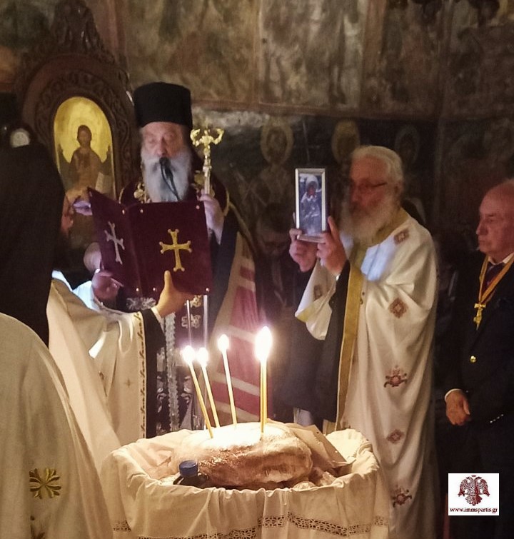 Στην ακολουθία χοροστάτησε ο σεβασμιώτατος Μητροπολίτης Μονεμβασίας και Σπάρτης κ. Ευστάθιος, ο οποίος ευλόγησε τους άρτους και απηύθυνε λόγο πνευματικής ενίσχυσης στους προσκυνητές.