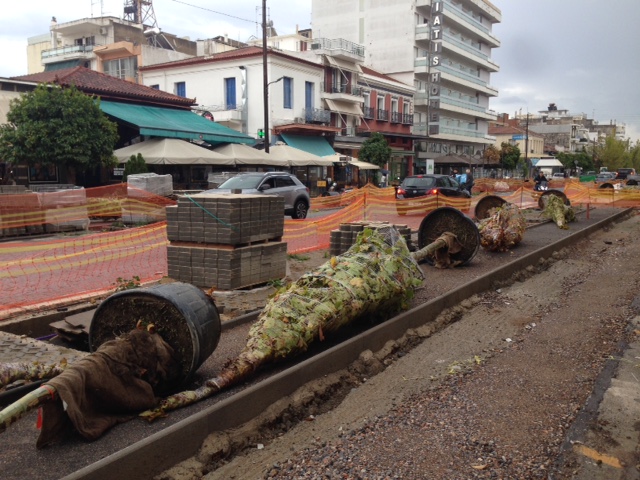 Νεράκι αρκετό κι ευχάριστο για να ποτιστούν οι ελιές κι οι καρποί έφερε και η σημερινή (15/11) βροχούλα, στη Σπάρτη. Μαζί όμως έφερε και καμμιά 30αριά πλατάνια και τα προσγείωσε στο κέντρο της πόλης, στην Παλαιολόγου, στην ανάπλαση. Χάζι έκαναν οι περαστικοί από το πρωί, τα συνεργεία της αναδόχου εταιρείας που ξεφόρτωναν τα πλατάνια και τα άφηναν ξάπλα, μαζί με τους γλάστρες τους, στο μεσαίο τμήμα Κων/νου Παλαιολόγου, ανάμεσα στις οδούς Ευαγγελιστρίας και Βρασίδου. «Τι μας βρήκε πάλι;», αναρωτήθηκαν πολλοί. Και προφανώς, αυτό που συμβαίνει είναι πως ο ανάδοχος της ανάπλασης παίρνει τα μέτρα του, ενόψει της συνεδρίασης του Τεχνικού Συμβουλίου της Αποκεντρωμένης. «Παλιά του τέχνη κόσκινο».