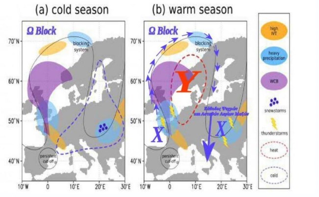 Όπως αναφέρει, τα συστήματα που επηρεάζουν την Ελλάδα κατά κανόνα κινούνται από τα βορειοδυτικά προς τα νοτιοανατολικά. Επίσης, υπάρχουν περιπτώσεις που η ροή των αερίων μαζών είναι τέτοια ώστε τα συστήματα αυτά εμποδίζονται να κινηθούν από τα δυτικά ή τα βορειοδυτικά προς τα ανατολικά ή νοτιοανατολικά και τότε λέμε ότι δημιουργείται Εμποδισμός (blocking). Αυτός ο εμποδισμός που επικρατεί εδώ και πολλές εβδομάδες είναι Ω - Εμποδισμός.