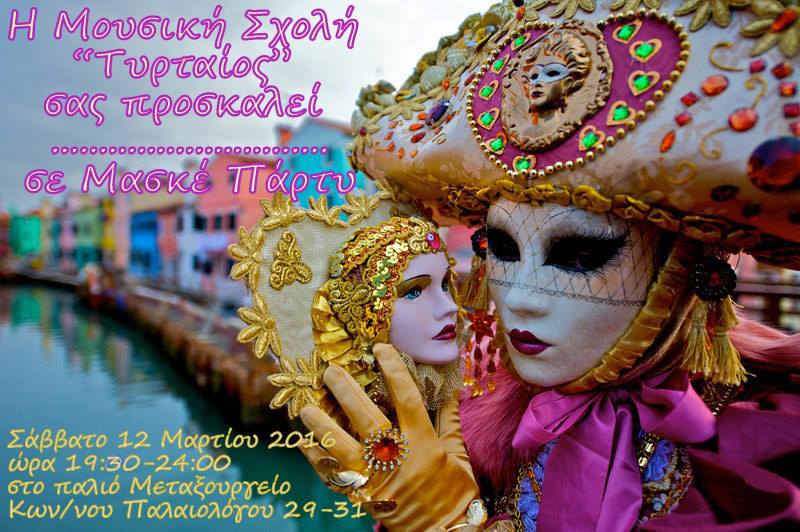 19.30 | Μασκέ Πάρτυ (Live-Jam) από τη Μουσική Σχολή “Τυρταίος” στο παλιό Μεταξουργείο (Κ. Παλαιολόγου 29-31).