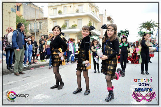 Τα πληρώματα φέτος ξεπέρασαν κάθε προσδοκία σε συμμετοχή και παρουσία με σύμμαχο τον καιρό που μας έκανε τη χάρη να διασκεδάσουμε σε ανοικτό χώρο. Τον ενθουσιασμό τους κατέθεσαν οι Πρόσκοποι της Σπάρτης με εμφάνιση Ζουλού ανοίγοντας τη φετινή παρέλαση και κατακτώντας δίκαια το δεύτερο χρηματικό έπαθλο των τριακοσίων ευρώ, αποτέλεσμα της ομαδικής και συντονισμένης συνεργασίας τους στην προετοιμασία των χειροποίητων στολών τους. Μια ομάδα που από την ημέρα ίδρυσής τους στην Σπάρτη δίνουν το ενεργό παρόν στις πολιτιστικές εκδηλώσεις του Δήμου Σπάρτης. Ακόμη μια χρονιά, πολύ καλά προετοιμασμένο ήταν ο σύλλογος γονέων του 4ου Δημοτικού Σχολείου Σπάρτης και η θεατρική του Ομάδα που χόρεψαν μετά την παρέλαση, στην πλατεία σε ρυθμούς tsarleston, ελληνικού κινηματογράφου ντυμένοι γοργόνες και μάγκες, regeaton, sampa, can-can και hip-hop. Επιβράβευση της πολύ καλής προετοιμασίας των μαθητών, του συλλόγου και της δασκάλας φυσικής αγωγής τους, κας Μαίρης Μασούρα, ήταν η παραλαβή του τρίτου χρηματικού επάθλου των διακοσίων ευρώ από την κριτική επιτροπή της mascarata 2016.