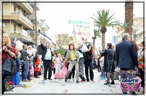 Ευκαιρία για πλάκες, τραγούδι, χορό και ξεφάντωμα πρόσφερε η αποκριάτικη παρέλαση του Δήμου Σπάρτης Mascarata 2016 για τέταρτη συνεχόμενη χρονιά με την υποστήριξη του αθλητικού και πολιτιστικού συλλόγου Ολυμπιακό Κέντρο Σπάρτης και το 300ο Σύστημα προσκόπων Σπάρτης. Ως μέρος της ελληνικής παράδοσης, μια μάσκα μας βοήθησε να γυρίσουμε στα παιδικά μας χρόνια, της αθωότητας, του αυθορμητισμού και της καλής διάθεσης, τότε που τα κάναμε όλα με φαντασία και ενθουσιασμό. Η αποκριάτικη παρέλαση mascarata της Σπάρτης είναι μια καλλιτεχνική επανάσταση για τα πληρώματα. Οι μάσκες και οι στολές γίνονται το τέλειο εργαλείο για μία δημιουργική εκτόνωση από την καθημερινότητά μας.