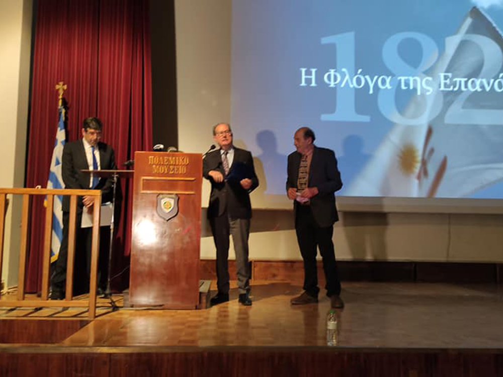 Η πρώτη προβολή της δραματοποιημένης ταινίας τεκμηρίωσης του Μανούσου Μανουσάκη «1821 – Η Φλόγα της Επανάστασης» έγινε το απόγευμα της Δευτέρας 13 Δεκεμβρίου, στο Πολεμικό Μουσείο Αθηνών, παρουσία του περιφερειάρχη Πελοποννήσου Παναγιώτη Νίκα, στελεχών της Περιφέρειας, αλλά και πολλών Πελοποννήσιων της Αττικής.
