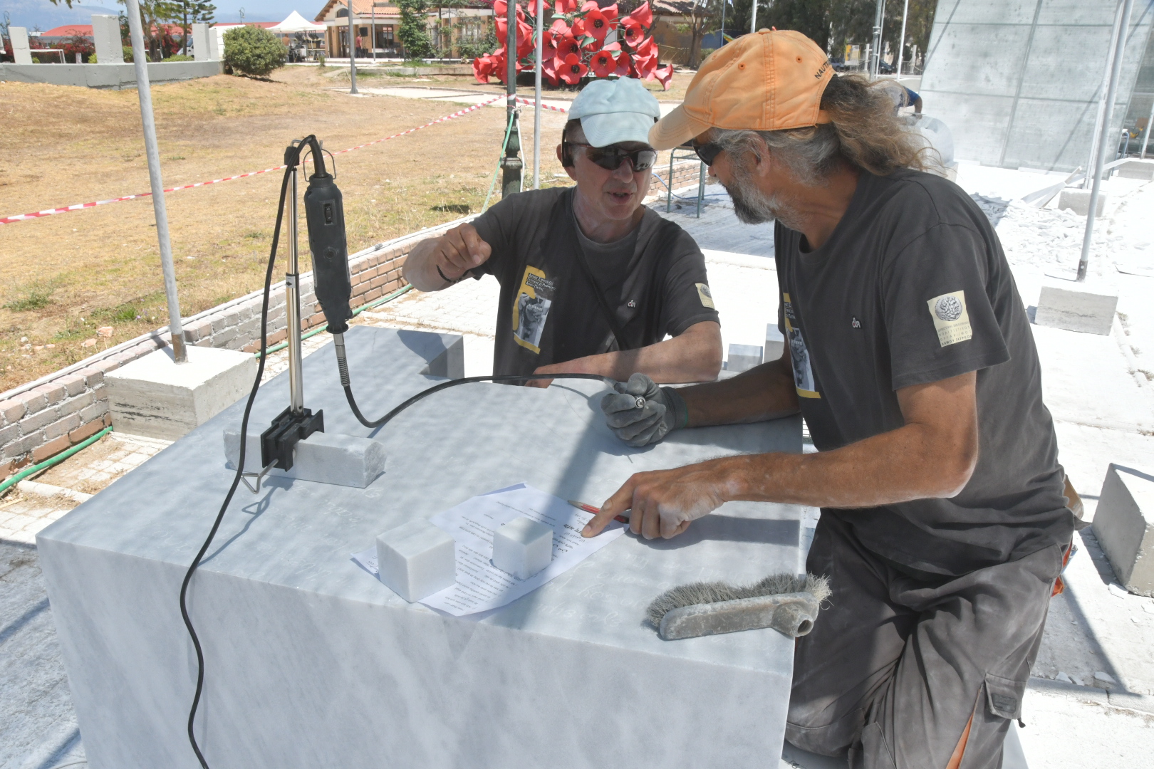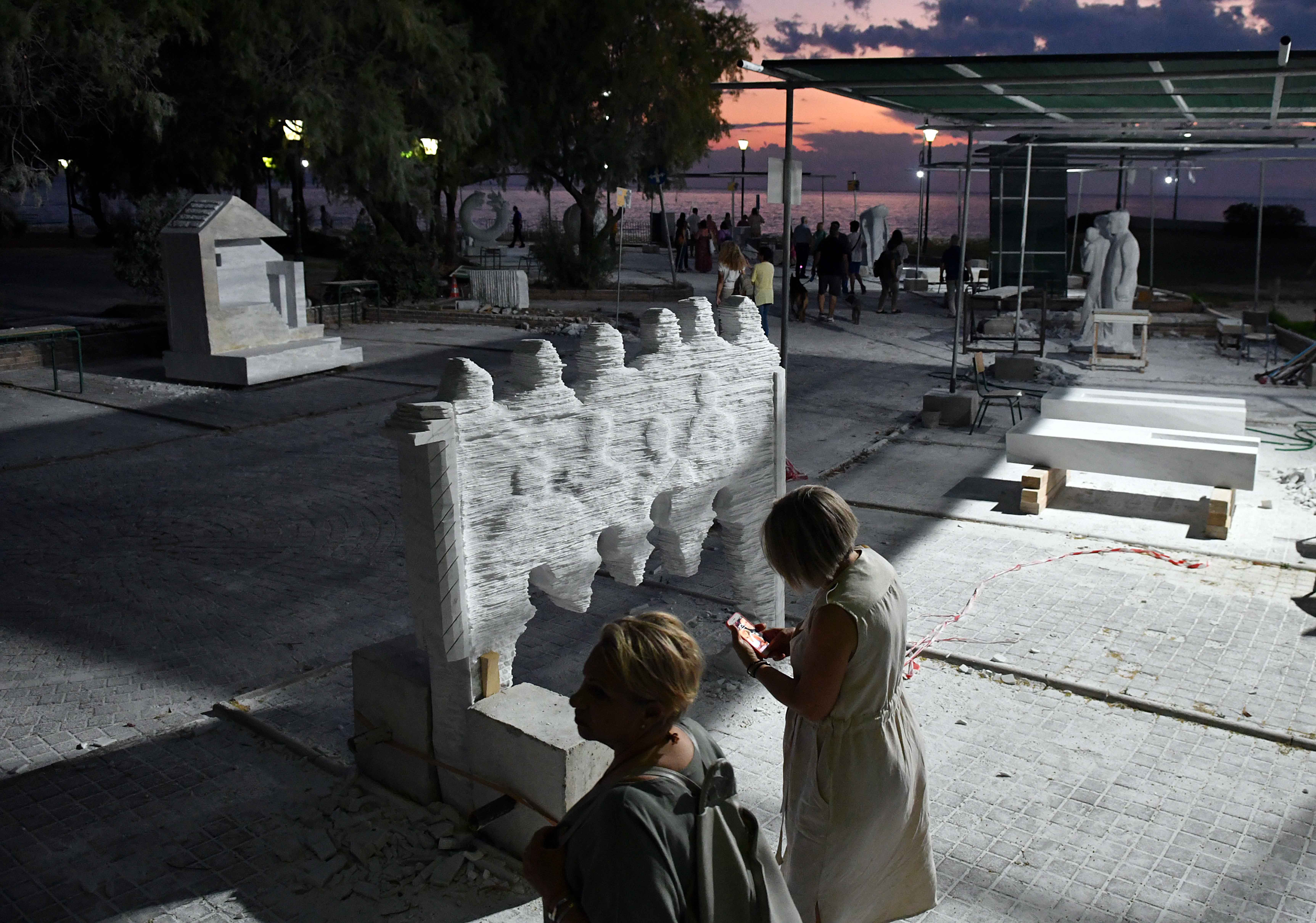 Ως επισκέπτρια και με τον ενθουσιασμό ενός ανθρώπου που συγκινείται ιδιαίτερα από καλλιτεχνικά ανταμώματα και κάθε μορφή δημιουργίας, η πρώτη και άμεση αίσθηση που γεννήθηκε μέσα μου ήταν η αρμονική συνύπαρξη των προσκεκλημένων γλυπτών-δημιουργών και η αλληλοτροφοδότησή τους μέσα από την καθημερινή εικαστική εργασία τους in situ, τους διαλόγους, συμφωνίες και διαφωνίες τους στα γεύματά τους και στις ώρες ξεκούρασης, τα πειράγματα και την ανταλλαγή φροντίδας και νοιαξίματος. Συνομιλώντας με τον καθένα από αυτούς ένιωσα και εντόπισα στη ζωή τους, πέρα απ’ ό,τι αποτυπώνεται σε ένα βιογραφικό σημείωμα, την προσωπική σχέση του καθενός με την μετα-τόπιση, το ταξίδι, το ξεβόλεμα, τον αποχωρισμό, το άνοιγμα και αγκαλιά στο νέο – ίσως και άγνωστο -, την αποδοχή και τον αλχημισμό του προσωπικού βιώματος, επώδυνου ή μη, μέσα από το μυστήριο της δημιουργίας. Η χώρα καταγωγής και δράσης κάθε γλύπτη του εν λόγω Συμποσίου επίσης φέρει στο DNA της διωγμούς, ταξίδια, πολέμους, περιπέτειες.