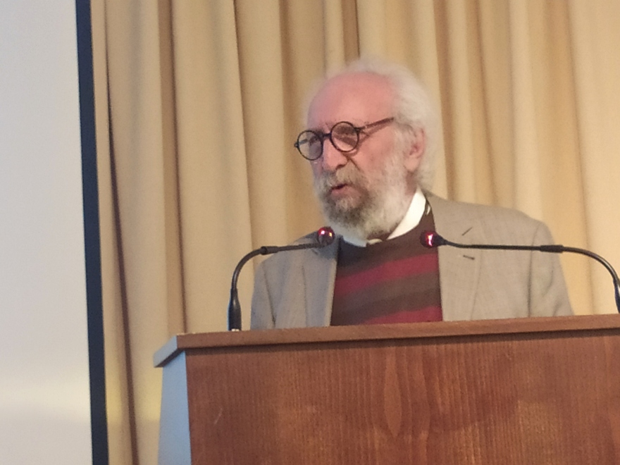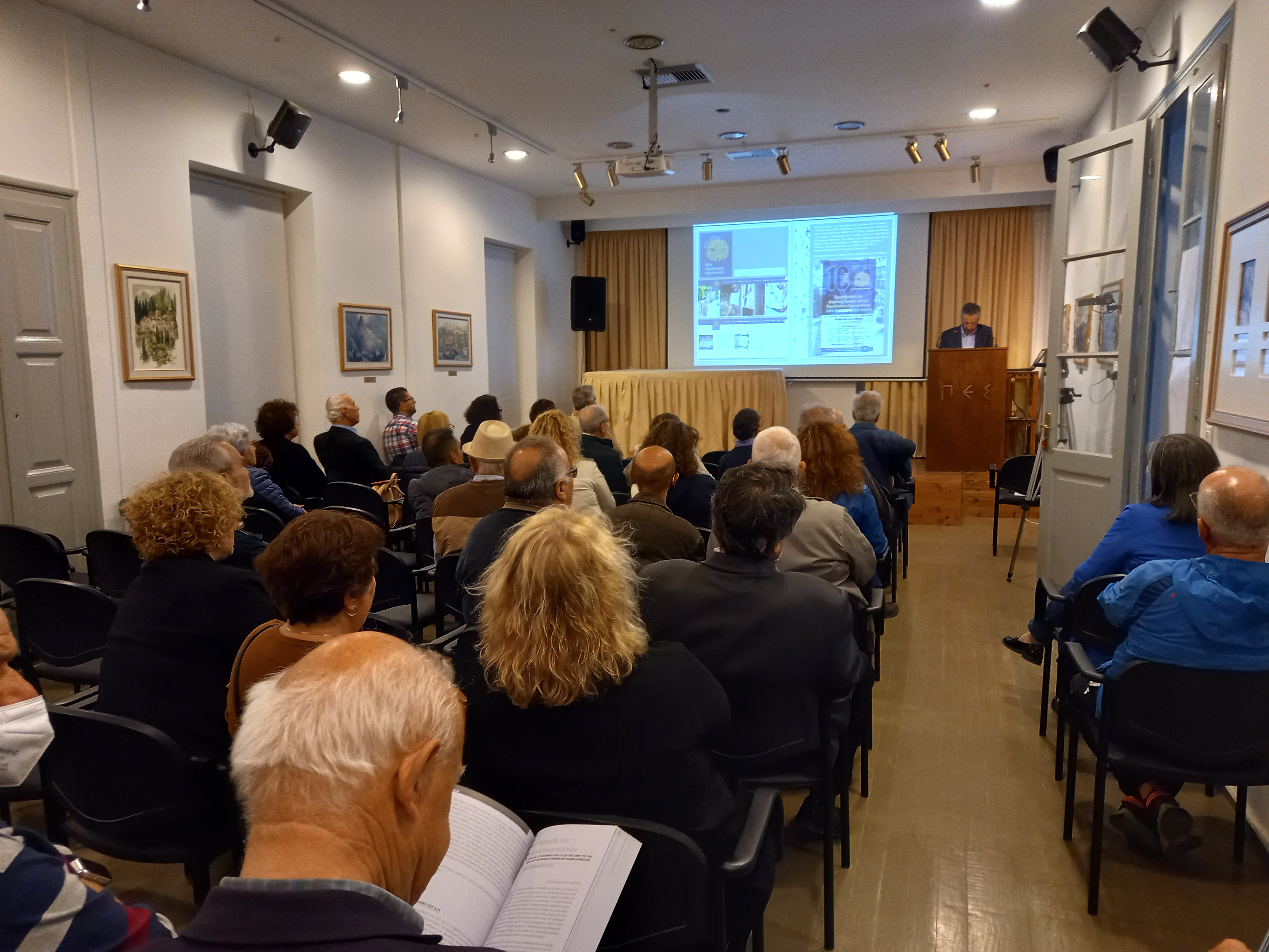 Τη συγγραφική ομάδα αποτελούσαν, εκτός από εμένα, ο Καθηγητής στην Αρχιτεκτονική του ΕΜΠ, Βασίλης Γκανιάτσας, ο οποίος είχε και την επιμέλεια της έκδοσης, ο Διδάκτορας Νομικής, Ηλίας Γιαννικόπουλος, η Καθηγήτρια του Πανεπιστημίου Πατρών, Αναστασία Γεωργιάδη, ο Ομότιμος Καθηγητής του ΕΜΠ, Μανώλης Κορρές, και η Διδάκτωρ – φιλόλογος, Μαρία Τσούπη. Άφησα τελευταίο τον Ομότιμο Καθηγητή του ΑΠΘ, Αργύρη Πετρονώτη. Τον άφησα τελευταίο γιατί σήμερα κλείνει ένας χρόνος από την μέρα που έφυγε από την ζωή, πλήρης ημερών. Απεβίωσε, στις 19 Απρίλη 2023, την ημέρα των 99 γενεθλίων του. Ένας χρόνος χωρίς τον μαστρ’ Αργύρη και το ελάχιστο που έχουμε να κάνουμε είναι να αφιερώσουμε στην μνήμη του την αποψινή εκδήλωση. Εκτός όμως από τους συγγραφείς, καθοριστικός ήταν και ο ρόλος στον συντονισμό επικοινωνίας, στις διορθώσεις των κειμένων κ.α, τόσο του προέδρου μας Γιάννη Τσιαούση, που βρισκόταν στην Κρήτη, όσο και του Ανδρέα Μανιάτη, που αυτός ήταν στον Καναδά…».