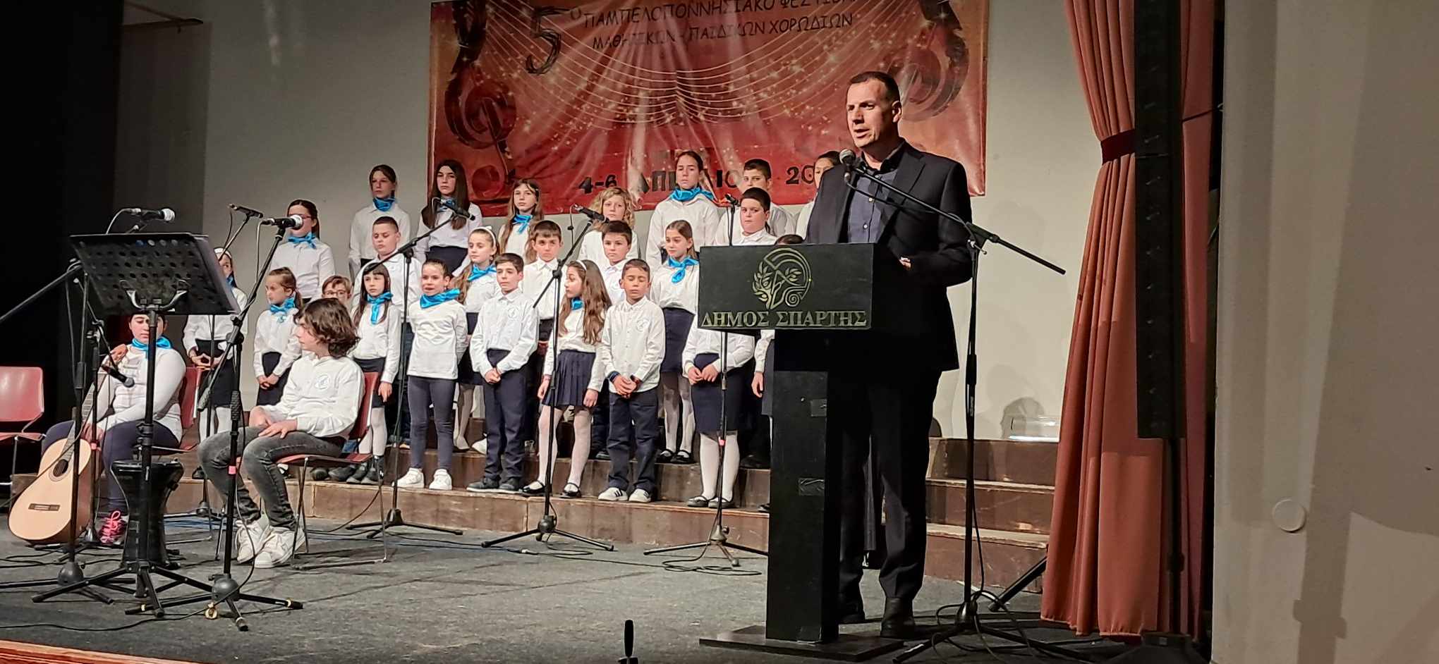 Χαιρετίζοντας το φεστιβάλ ο δήμαρχος Σπάρτης, Μιχάλης Βακαλόπουλος και ο πρόεδρος του Δημοτικού Συμβουλίου, Στέφανος Βρεττάκος, καλωσόρισαν τους μαθητές, τους γονείς και τους εκπαιδευτικούς, δηλώνοντας ότι «ο Δήμος Σπάρτης στηρίζει πάντα πρωτοβουλίες που αφορούν στην καλλιέργεια του πνεύματος και τη διάδοση της χορωδιακής μουσικής».