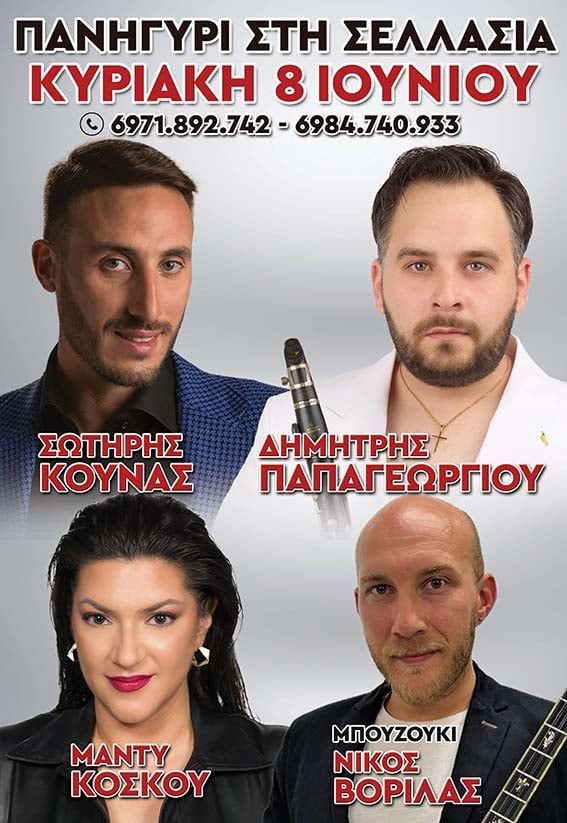 Το καθιερωμένο πανηγύρι για τον εορτασμό της Αγίας Τριάδας, διοργανώνει και φέτος ο Πολιτιστικός Επιμορφωτικός Περιβαλλοντικός Σύλλογος Σελλασίας, το βράδυ της προσεχούς Κυριακής 8 Ιουνίου.