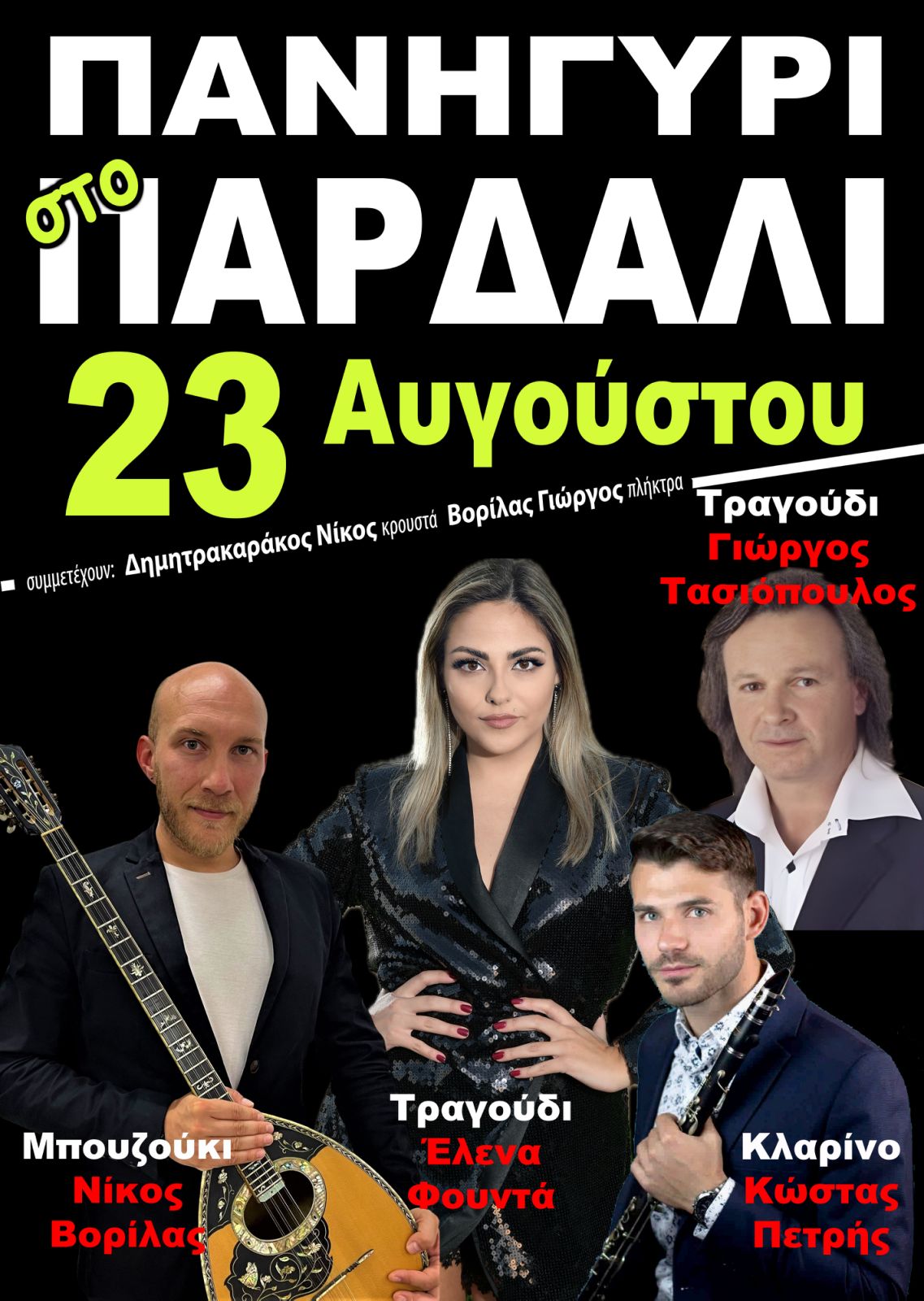 Η Τοπική Κοινότητα Παρδαλίου του Δήμου Σπάρτης ετοιμάζεται να υποδεχθεί ένα από τα πιο αναμενόμενα γεγονότα του καλοκαιριού, καθώς το Σάββατο 23 Αυγούστου διοργανώνεται το παραδοσιακό πανηγύρι του χωριού, με πλούσιο μουσικό πρόγραμμα και έντονη παραδοσιακή και λαϊκή διασκέδαση.