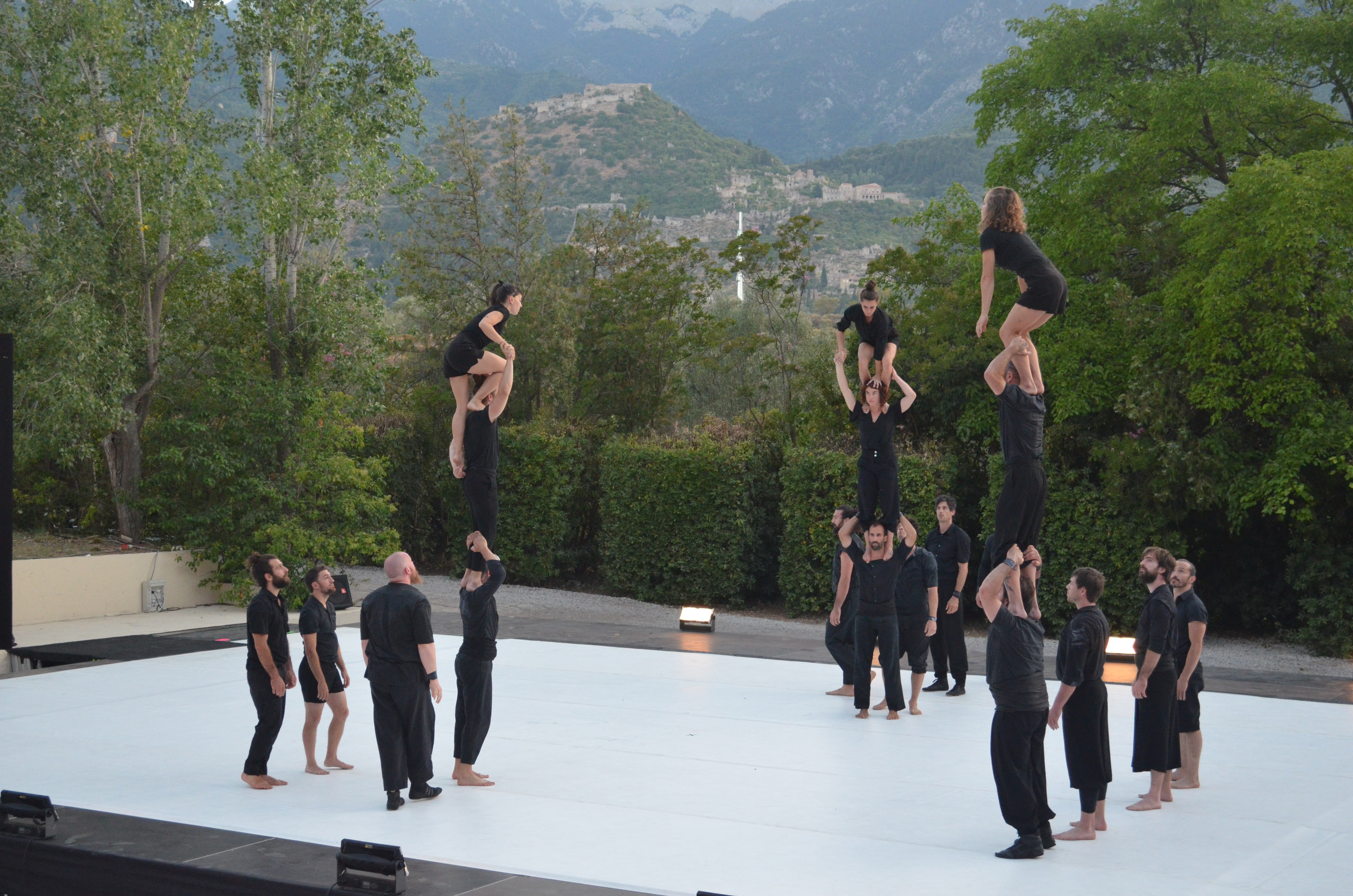 Δεκαεννέα μοναδικοί ακροβάτες, χάρισαν ένα υπερθέαμα, σχηματίζοντας ανθρώπινες στήλες που αναποδογύριζαν, ενώνονταν και διαλύονταν σε κλάσματα δευτερολέπτου, ενώ δεν έλειψαν και οι φορές που τα ακροβατικά τους έκοψαν κυριολεκτικά την ανάσα.