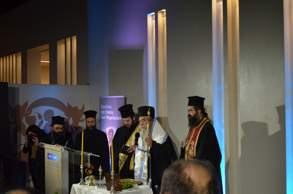 Η τελετή των εγκαινίων, την περασμένη Δευτέρα, ξεκίνησε με τον αγιασμό από τον σεβασμιώτατο Μητροπολίτη Μονεμβασίας και Σπάρτης κ. Ευστάθιο και ακολούθως το λόγο έλαβε η Αναστασία Κανελλοπούλου, μέλος του ΔΣ του σωματείου «Φίλοι των Ψηφιδωτών της Σπάρτης», η οποία ως εκπρόσωπος του Προέδρου Γιάννη Βαρβιτστιώτη εξέφρασε τη χαρά και τη συγκίνηση όλων για την ολοκλήρωση του έργου.