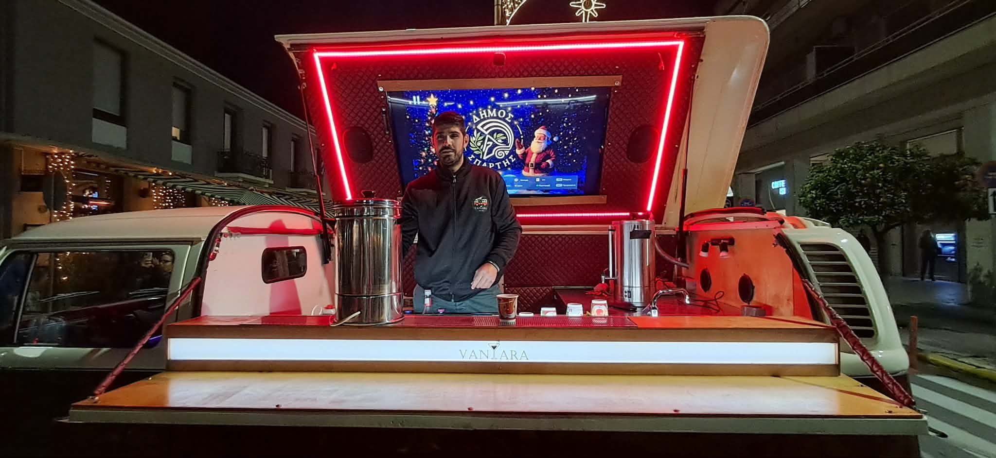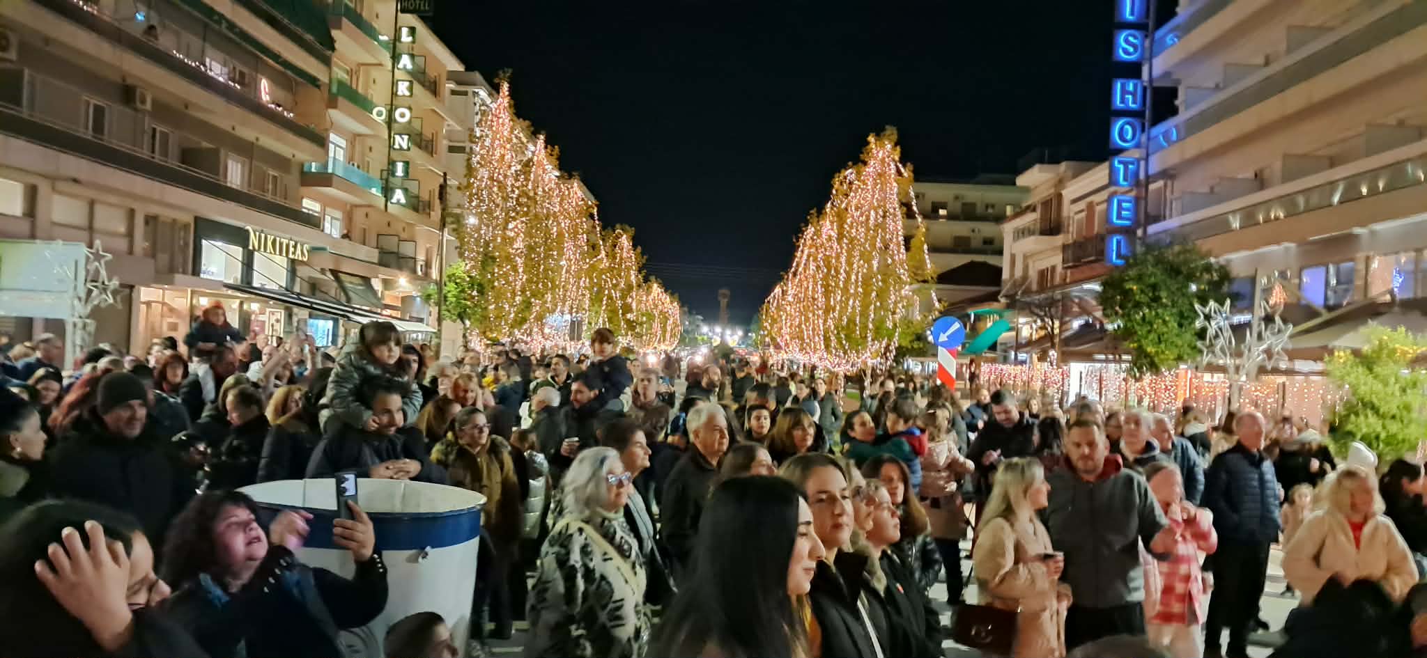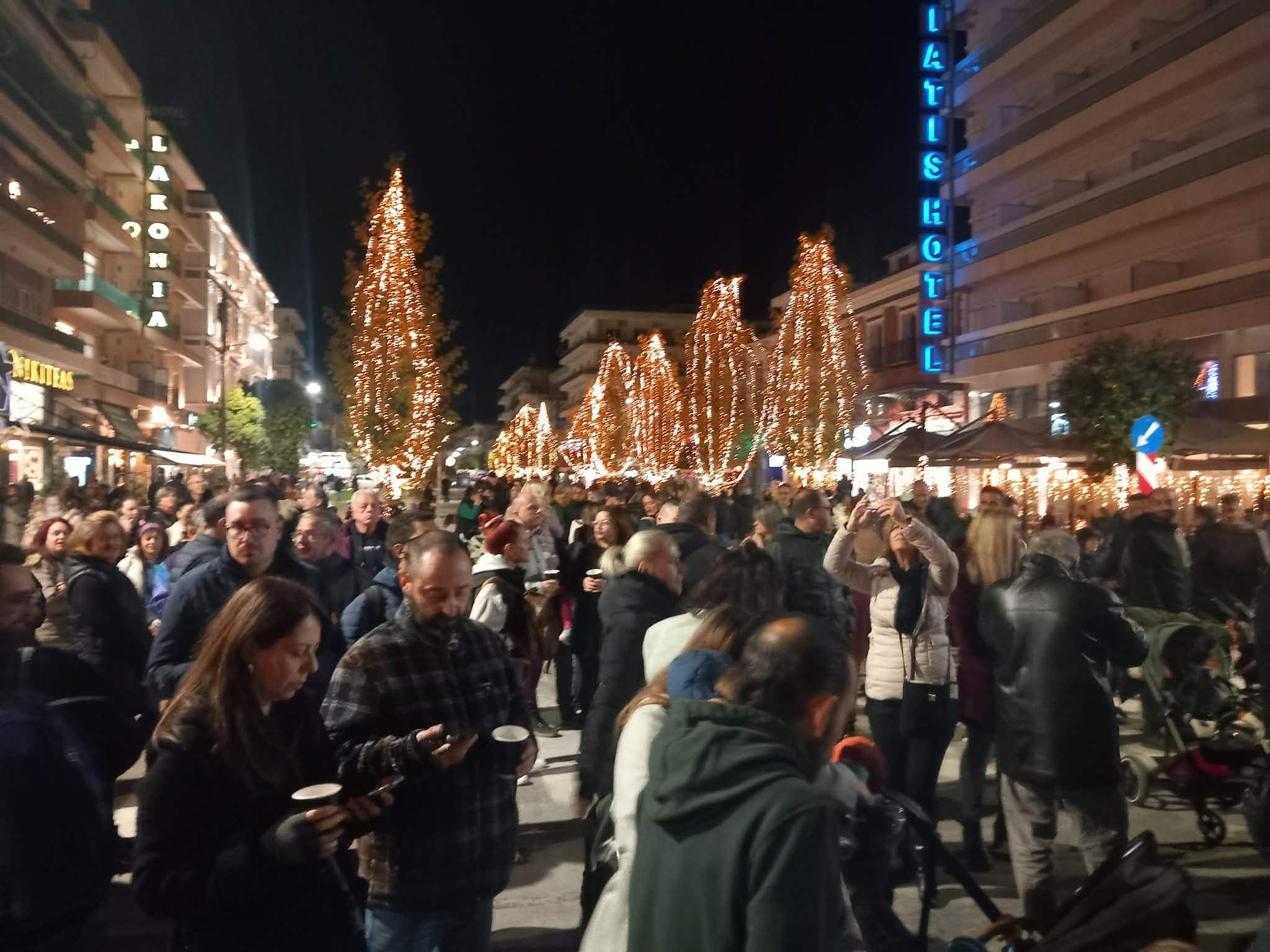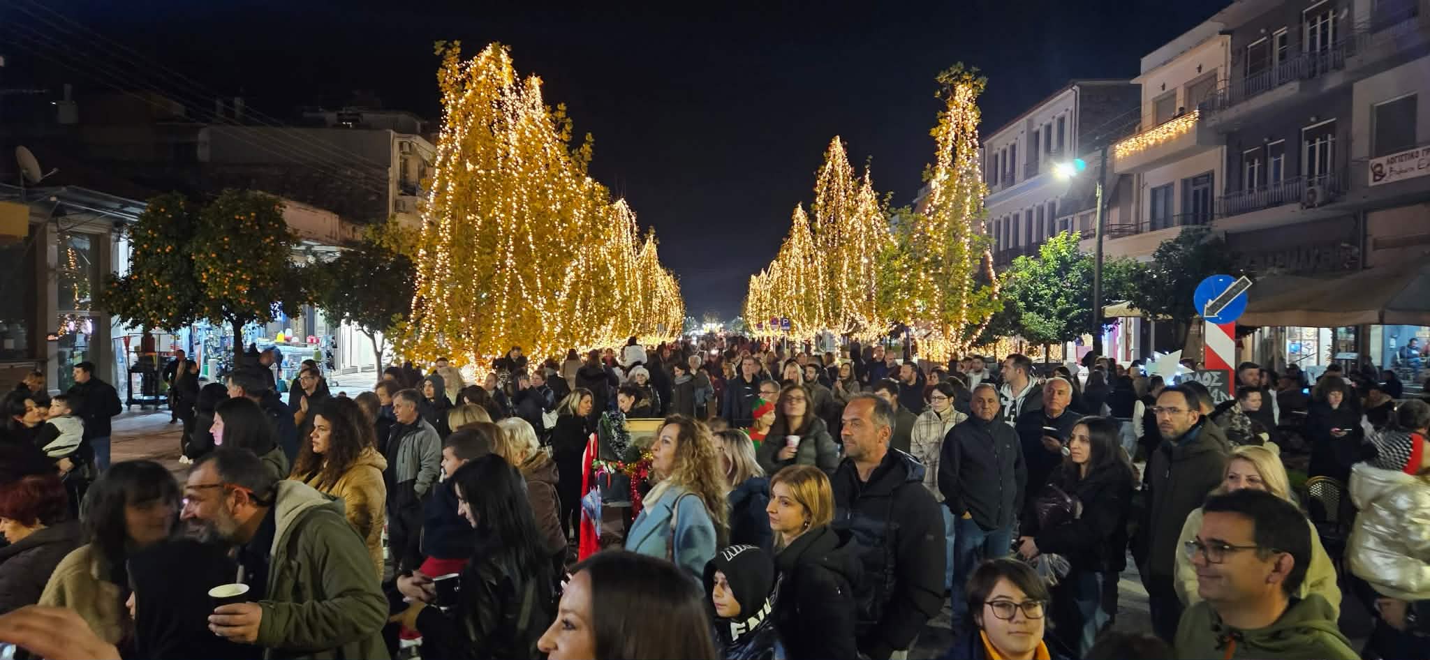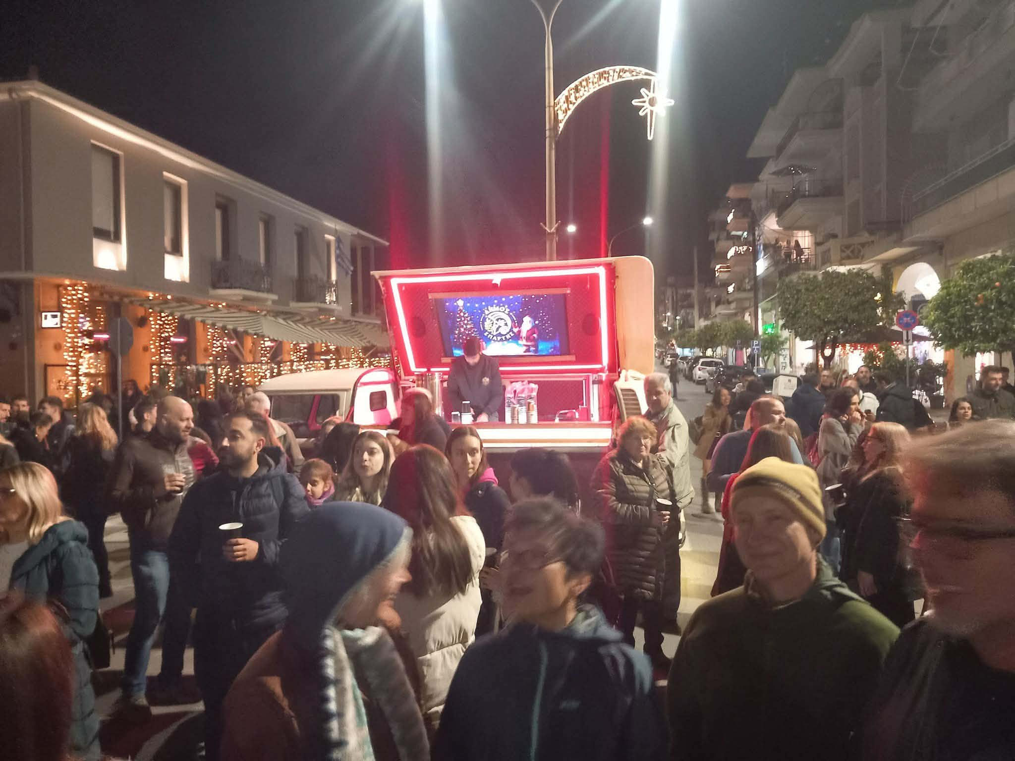 Από νωρίς το απόγεμα, μικροί και μεγάλοι γέμισαν την Κ. Παλαιολόγου, η οποία ήταν εκτάκτως κλειστή για την κυκλοφορία των οχημάτων λόγω της γιορτινής περίστασης, απολαμβάνοντας ζεστό κρασί, φωτογραφίες με τη μασκότ-χιονάνθρωπο και χριστουγεννιάτικες ζωγραφιές στο πρόσωπο από «ξωτικά», που ανέλαβαν να μεταφέρουν τους μικρούς φίλους στο κλίμα των ημερών.