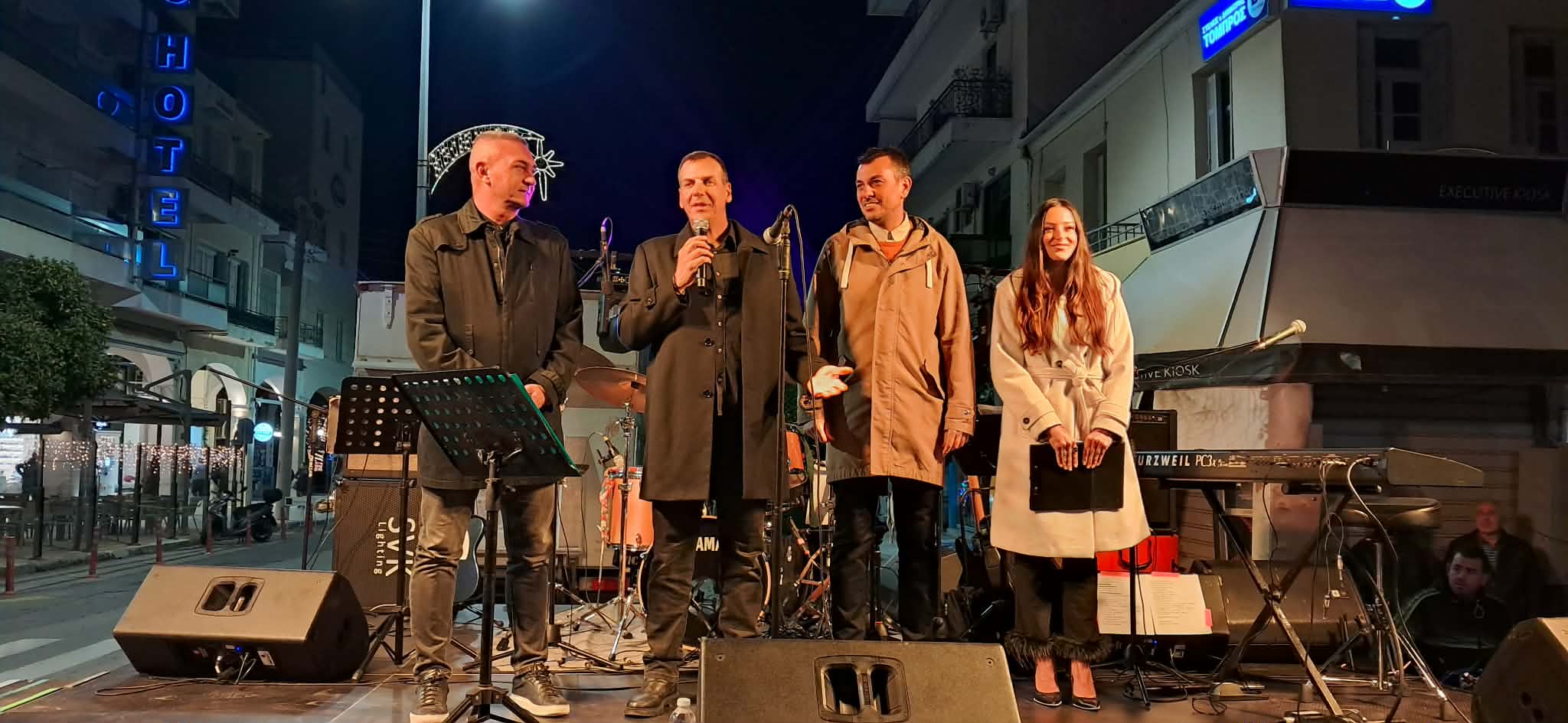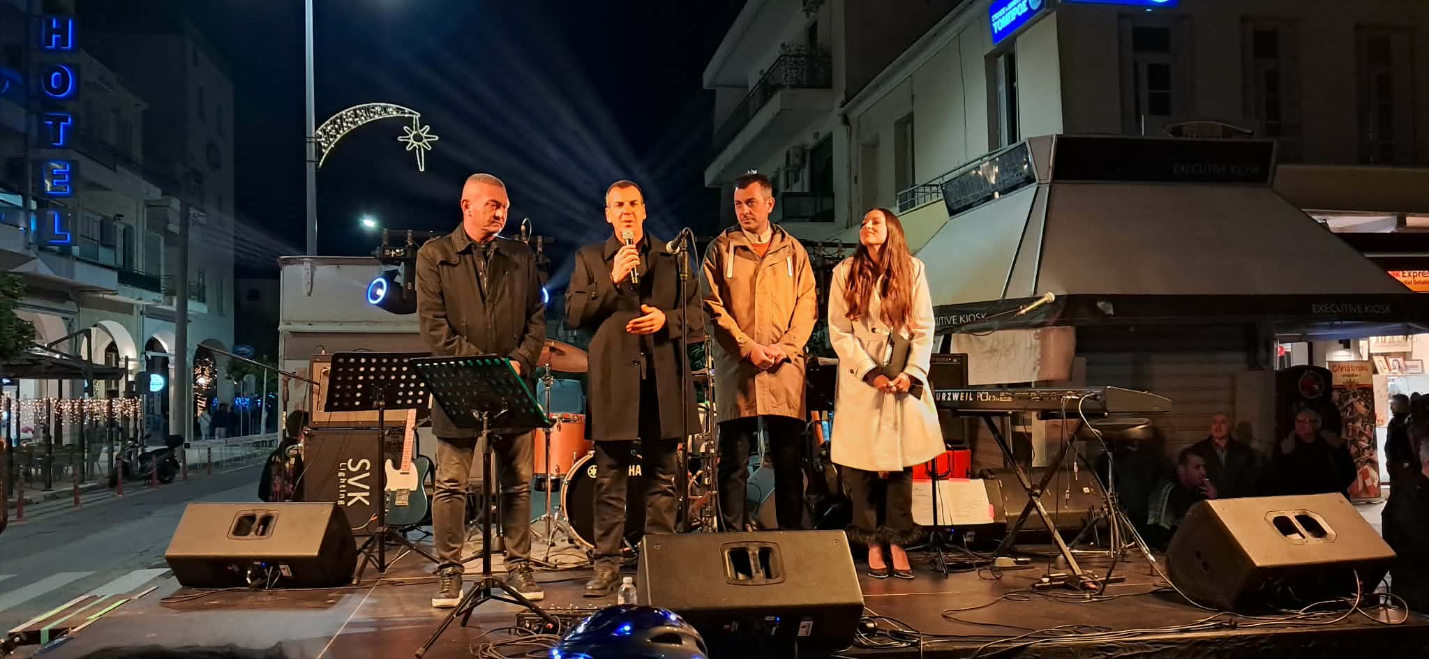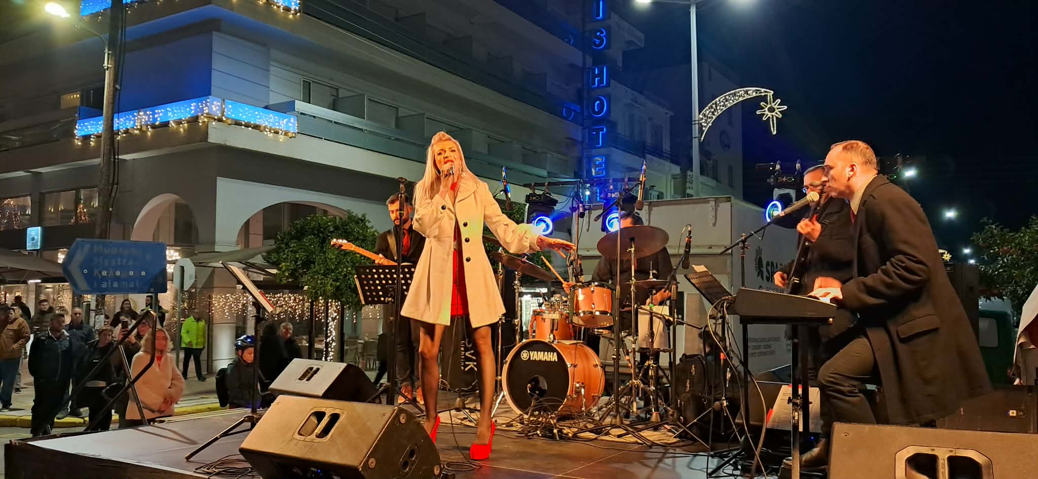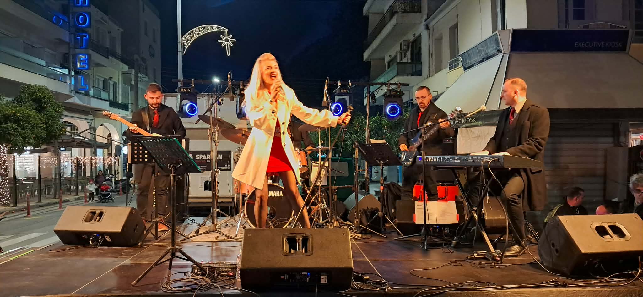 Λίγο αργότερα, οι Vanila Swing πήραν τη σκυτάλη, δημιουργώντας μια ατμόσφαιρα γιορτής με χριστουγεννιάτικες μελωδίες αλλά και αγαπημένες ελληνικές και ξένες επιτυχίες, που έκαναν τον κόσμο να συμμετέχει ενεργά στη γιορτή.