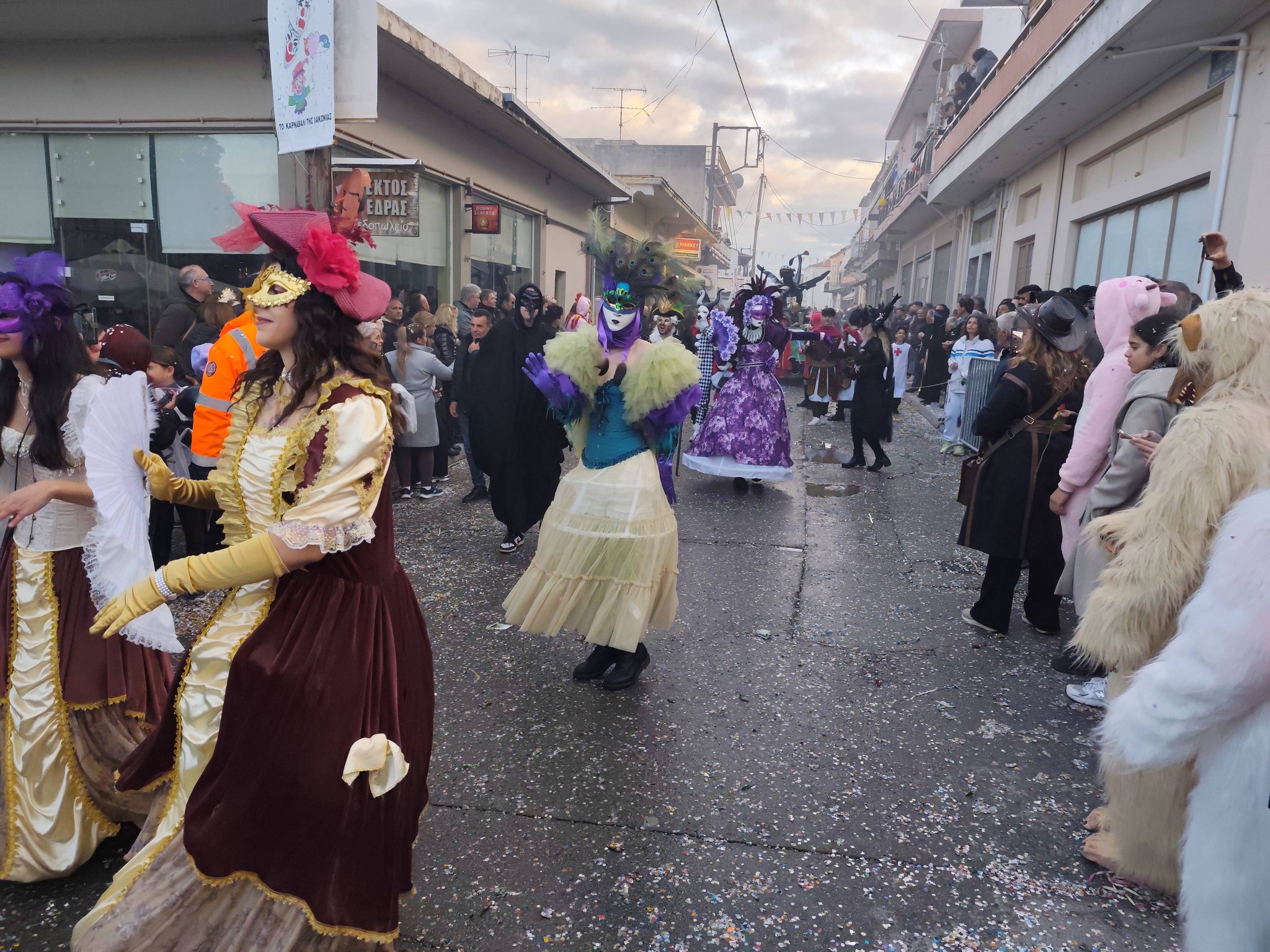 Η κεντρική πλατεία και οι γύρω δρόμοι πλημμύρισαν από δεκάδες καρναβαλιστές και θεατές. Τα άρματα, αποτέλεσμα πολύμηνης προετοιμασίας και συλλογικής δουλειάς, ξεχώρισαν για την ευρηματικότητα και τη σατιρική τους διάθεση. Θέματα εμπνευσμένα από την κοινωνική πραγματικότητα, την επικαιρότητα και την καθημερινότητα παρουσιάστηκαν με χιούμορ, αυτοσαρκασμό και έντονη καλλιτεχνική διάθεση. Μεταξύ άλλων ξεχώρισε το πολύχρωμο άρμα με τη «νύφη», στολισμένο με λουλούδια και έντονα χρώματα, έδωσε μια εικόνα χαράς και αισιοδοξίας, συμβολίζοντας τη γιορτή της ζωής και της άνοιξης.