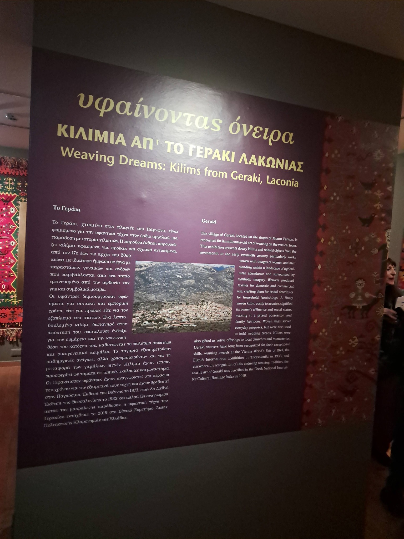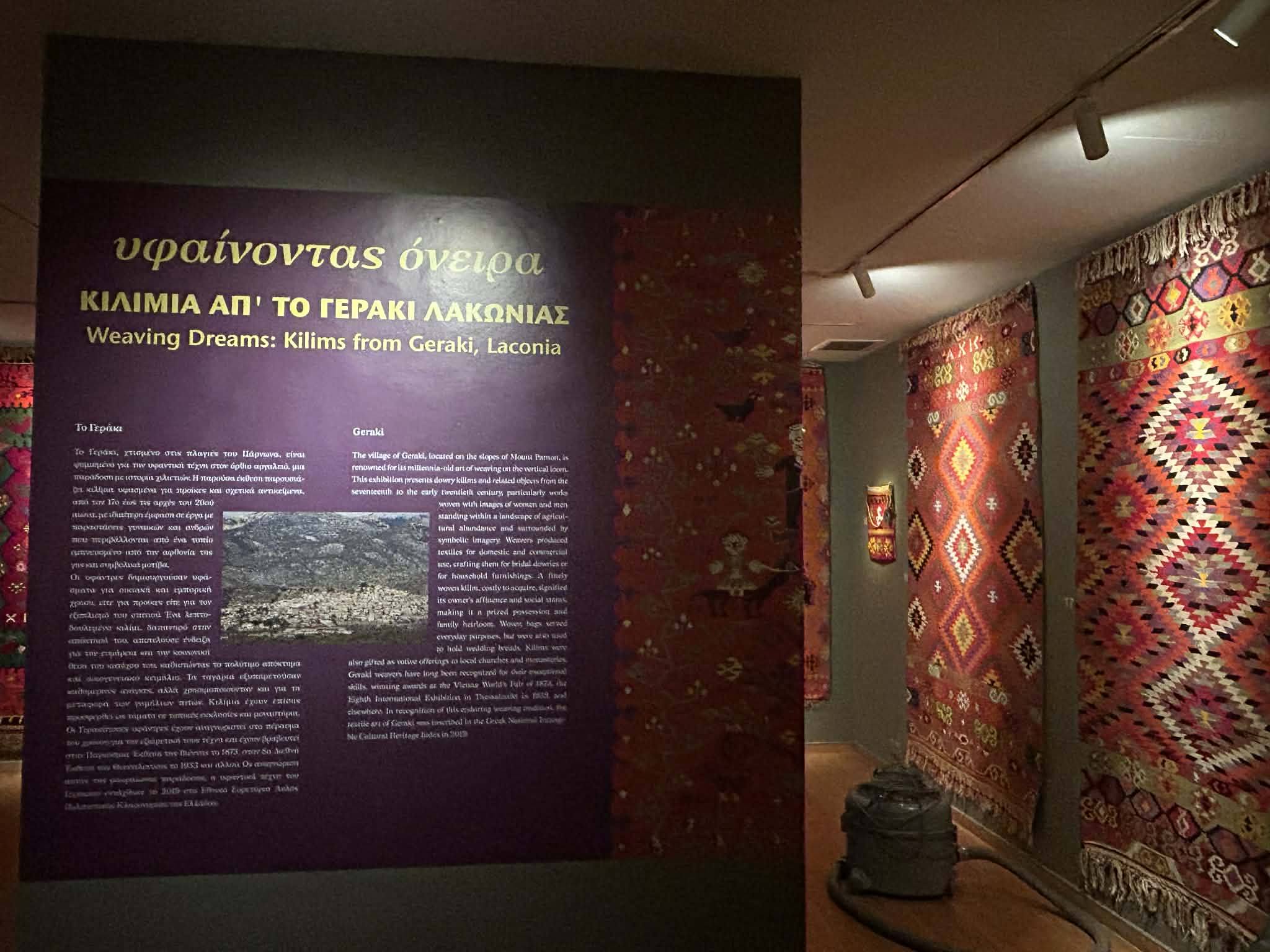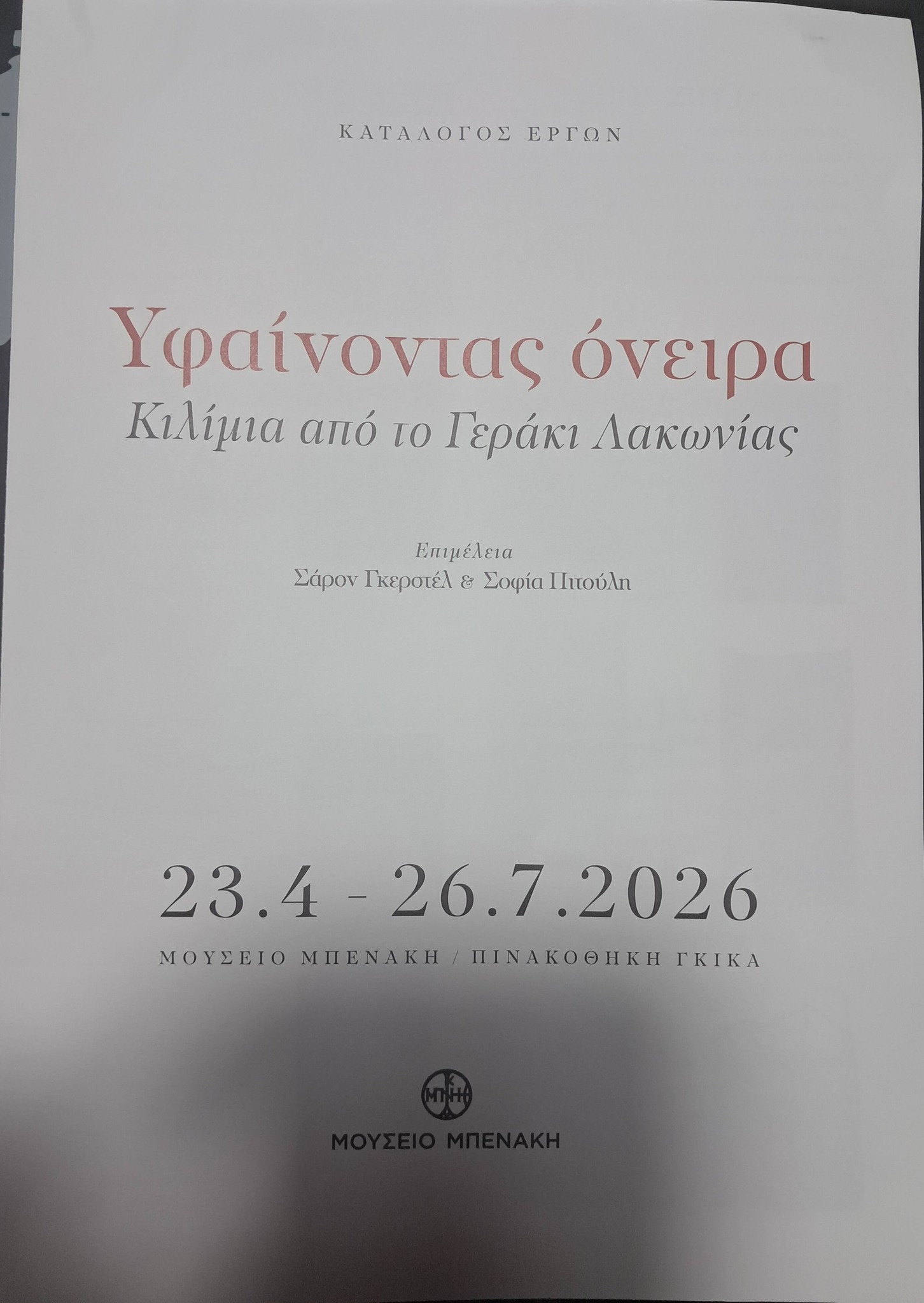 Στους ζεστούς, φιλόξενους χώρους του Μουσείου Μπενάκη στην Αθήνα, αυτές τις μέρες θα συναντήσει κανείς μια ιδιαίτερη, πολύχρωμη έκθεση που ξετυλίγει νήματα μνήμης, τέχνης και ιστορικής ταυτότητας και παράδοσης. Η έκθεση «Υφαίνοντας όνειρα. Κιλίμια απ’ το Γεράκι Λακωνίας» φέρνει στο προσκήνιο μια από τις πιο ιδιαίτερες και ιστορικά φορτισμένες μορφές λαϊκής τέχνης της Ελλάδας, μεταφέροντας το κοινό από την καρδιά της Αθήνας στις πλαγιές του Πάρνωνα. Εκεί, η υφαντική στον όρθιο αργαλειό ήταν τρόπος ζωής, αφήγηση, απαθανάτιση μνήμης. Και σήμερα, μέσα από τα κιλίμια που εκτίθενται, αποκαλύπτεται ως ένα ζωντανό πολιτισμικό αποτύπωμα που συνεχίζει να συνομιλεί με το παρόν κουβαλώντας το βάρος του παρελθόντος στις κλωστές του.