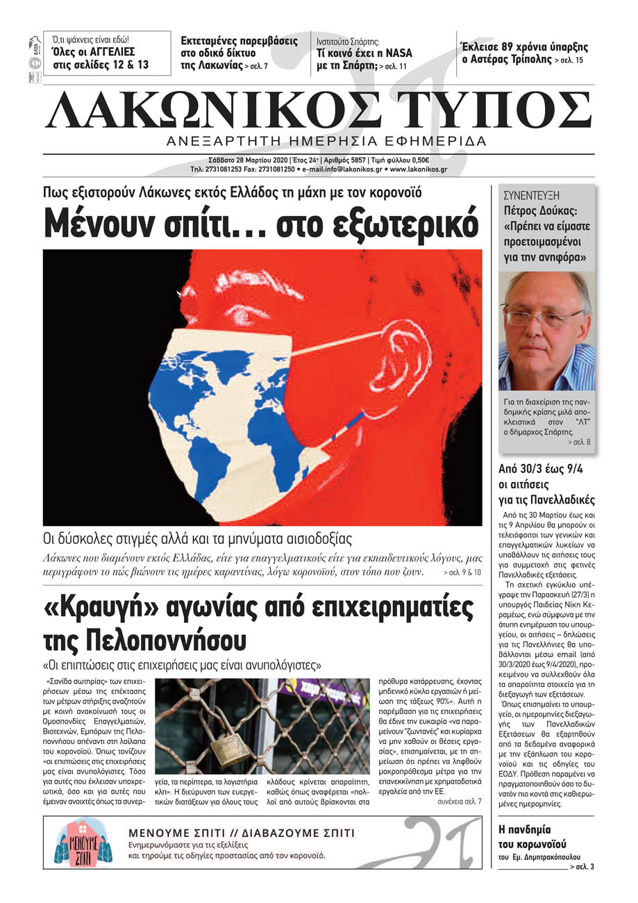 Ενημερωθείτε για όλη την επικαιρότητα της Λακωνίας και όχι μόνο μέσα από τη συνεχή ροή του www.lakonikos.gr. Κάνετε like στη σελίδα και γίνετε μέλος στην ομάδα του lakonikos.gr στο Facebook για να μαθαίνετε τα νέα πρώτοι! Με το κύρος και την αξιοπιστία του "Λακωνικού Τύπου", της μοναδικής ημερήσιας εφημερίδας της Λακωνίας με ιστορία 23 και πλέον ετών