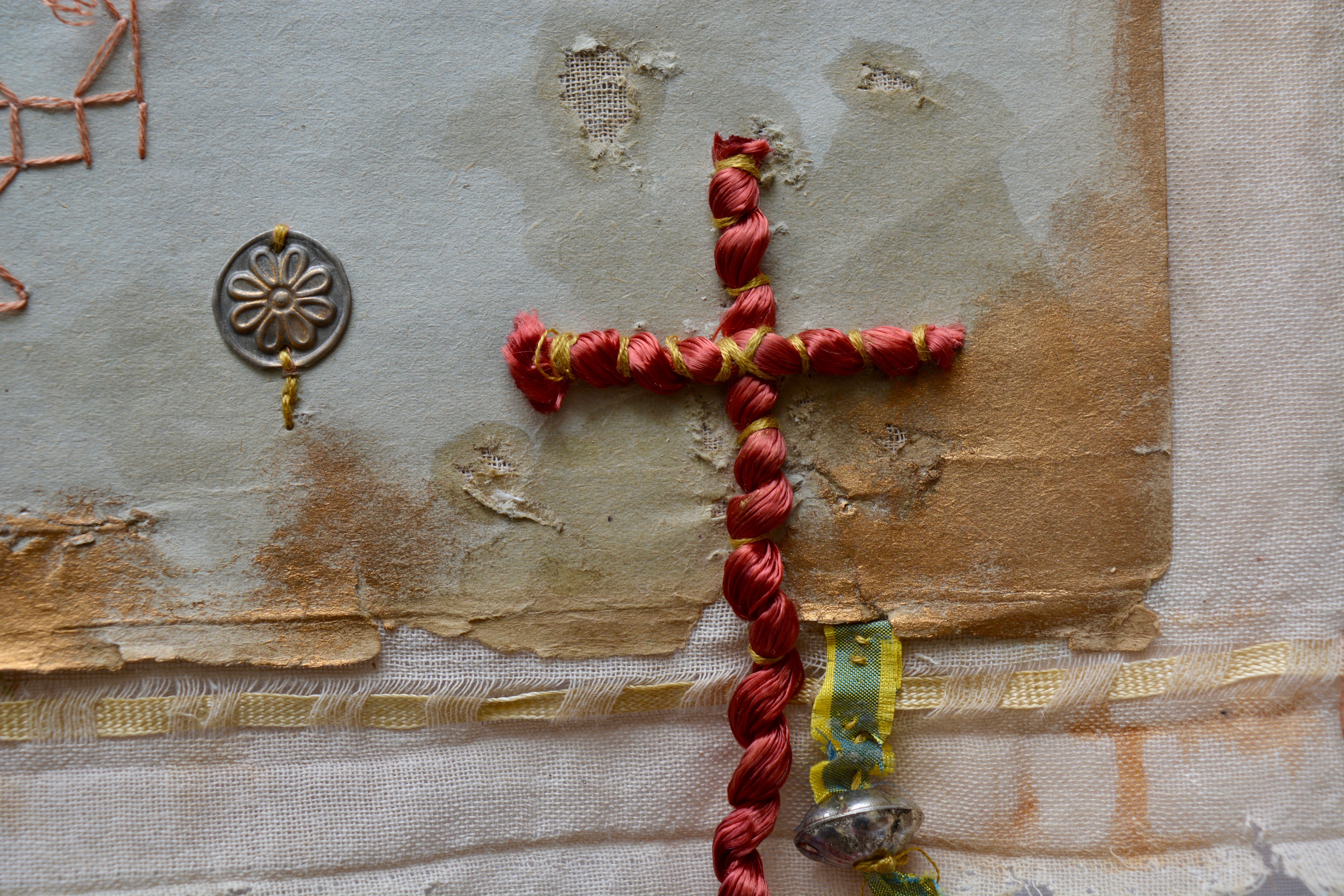 Στα τελευταία έργα - με τη συνεργάτιδά μου - πειραματιστήκαμε με πρώτη ύλη το χαρτί, ένα υλικό αντιθέσεων, ευάλωτο αλλά και σκληρό, εφήμερο και διαχρονικό. Όλα μας τα έργα ήταν σχεδόν εξ ολοκλήρου από χαρτί, κυρίως παλαιά βιβλία-δημοτολόγια του 1940-1950 που ήταν προς ανακύκλωση. Ιδιαίτερης ποιότητας χαρτί, λεπτό και εύθραυστο, που καθρεπτίζει και την τάση της ιστορίας να διαφεύγει εάν δεν καταγράφεται. Διπλώσαμε και ξεδιπλώσαμε κομμάτια χαρτιού, διαμορφώσαμε όγκους, σχήματα, δημιουργήσαμε σχέδια ανάγλυφα ή διάτρητα, ενώσαμε διαφορετικό είδος χαρτιού και πλάσαμε επιφάνειες, ώσπου οι απλές χάρτινες επιφάνειες πέρασαν σε σταθερές μορφές που απέδιδαν συμβολισμούς. Σε κάποια έργα έχει χρησιμοποιηθεί σίδερο και καμβάς-γάζα με μίξη και άλλων υλικών, σκόνες και φύλλα χρυσού, ασήμι, όχι λόγω αναγκαιότητας χρήσης τους αλλά γιατί ως υλικά ενσωματώνουν την ουσία και το μήνυμα των έργων.